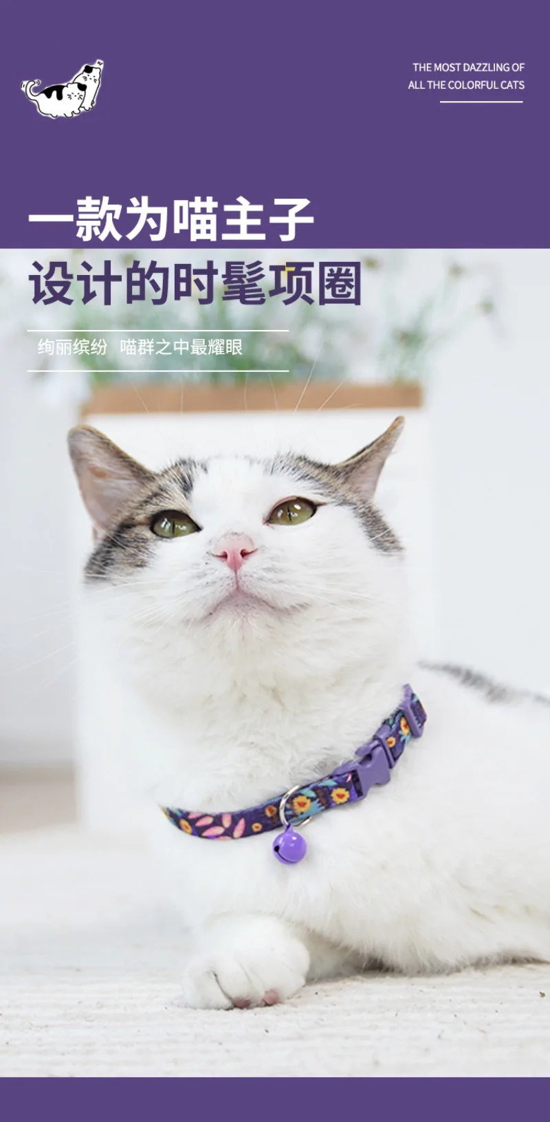 Collar para Gato, Collar con hebilla de seguridad ajustable, correa para el cuello con campana antipérdida para gatito, suministros creativos para mascotas, adornos de decoración