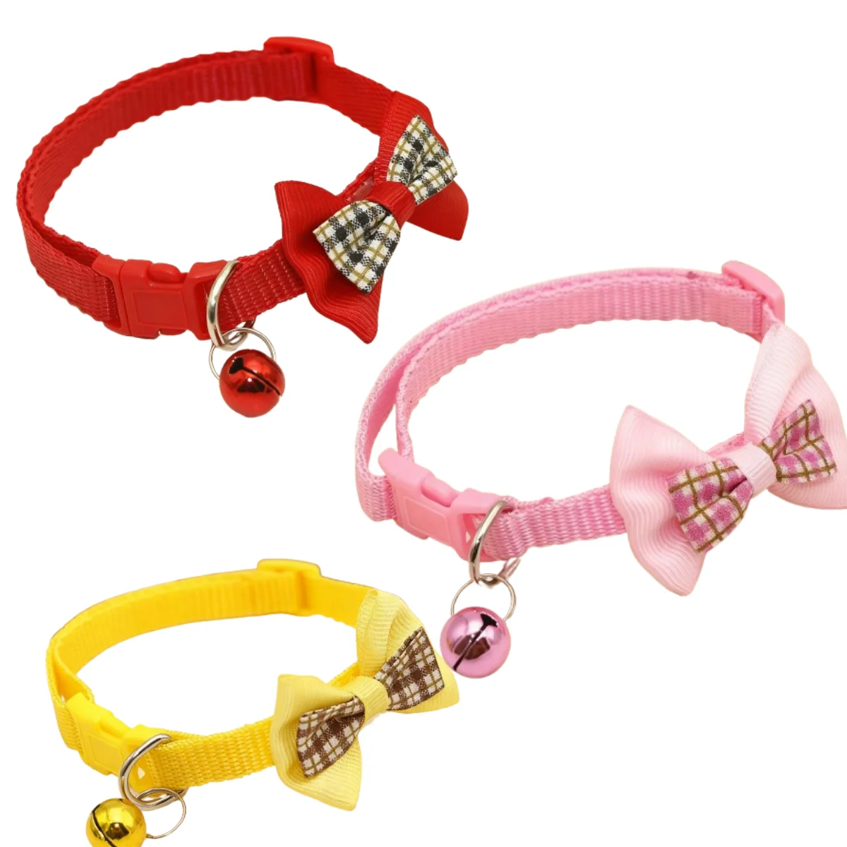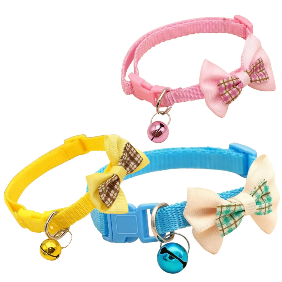 Collar de gato colorido bonito, collar de campana para perro, Collar de campana con lazo a cuadros, Collar de campana ajustable para mascotas