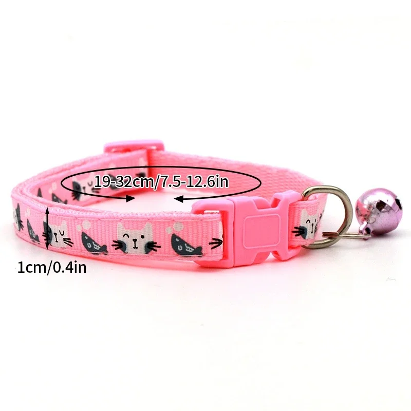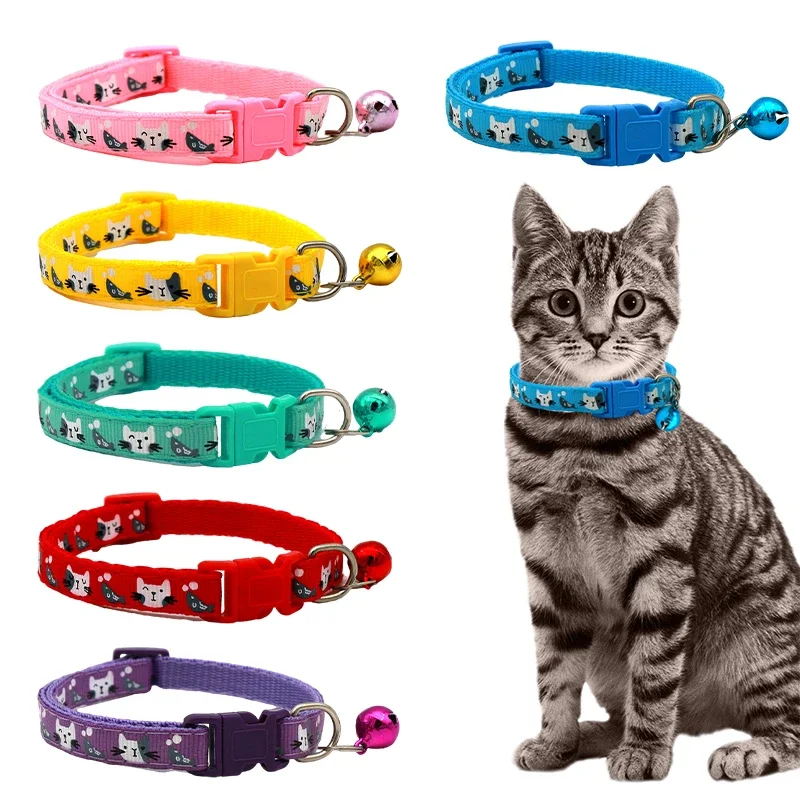 Collar de gato con estampado de dibujos animados, collares de nailon para mascotas, suministros coloridos para el cuello del perro, accesorios ajustables para el cuello del gato