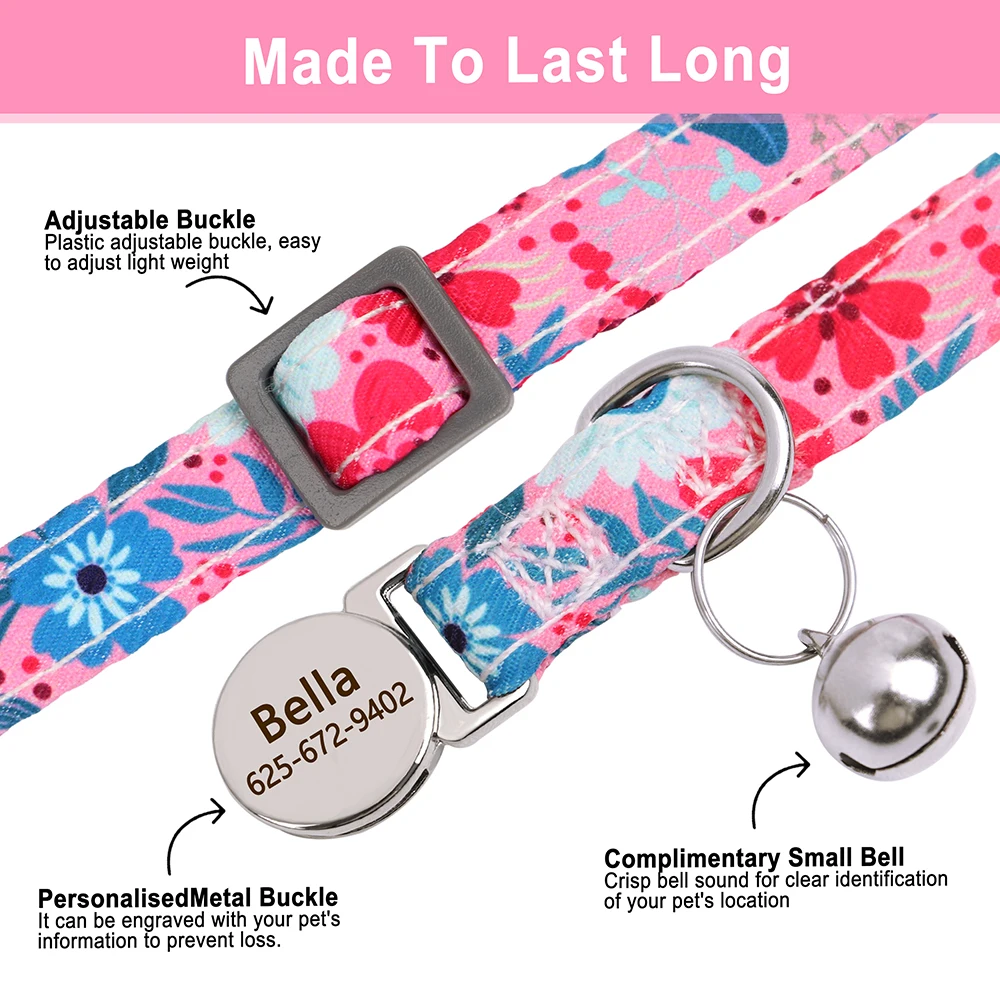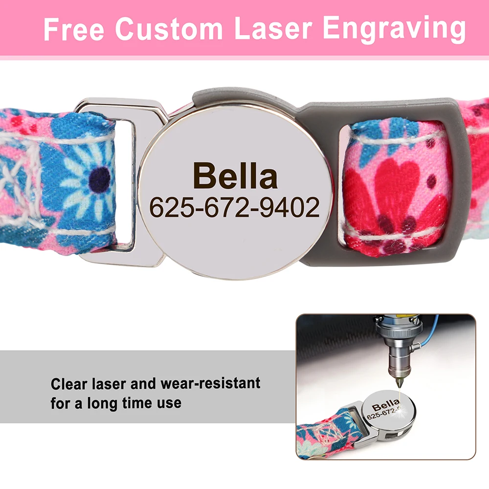 Collar de gato impreso personalizado, collares ajustables para gatitos y cachorros con placa de identificación grabada gratis, campana, collares antipérdida para gatos