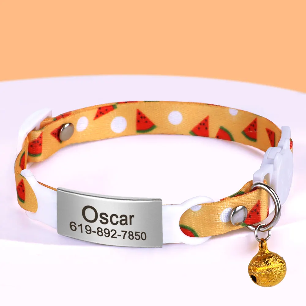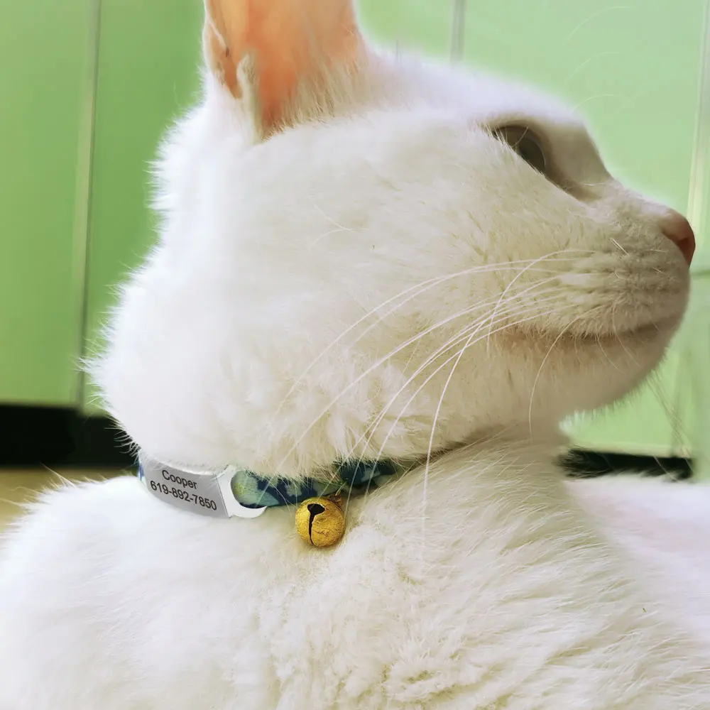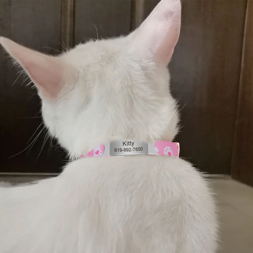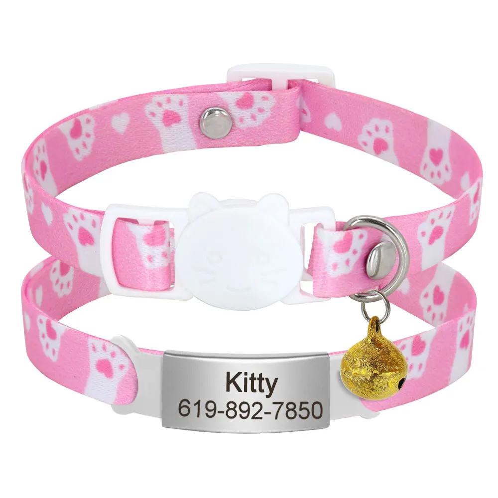 Collar de gato con etiqueta de identificación personalizada con campana, collares de seguridad para gatos, collar bonito de liberación rápida, grabado gratis para gatos y gatitos