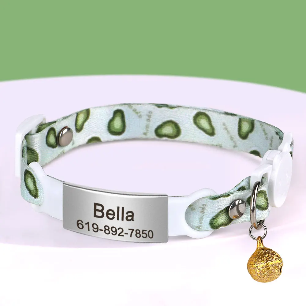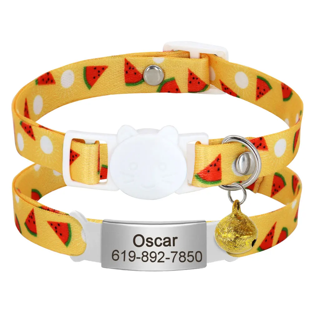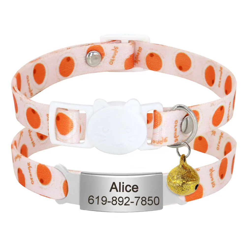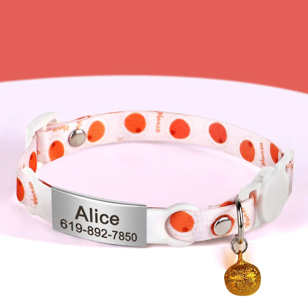 Collar de gato con etiqueta de identificación personalizada con campana, collares de seguridad para gatos, collar bonito de liberación rápida, grabado gratis para gatos y gatitos