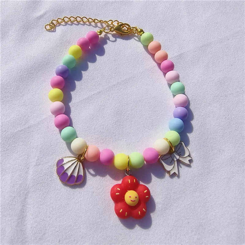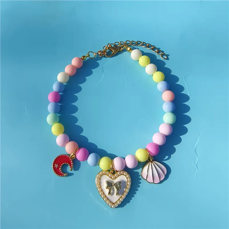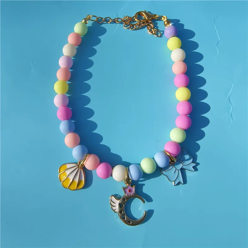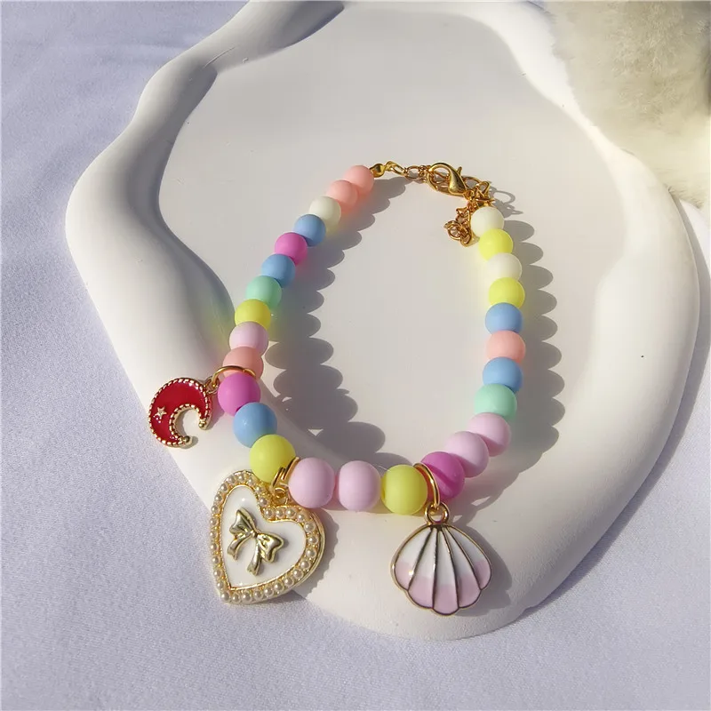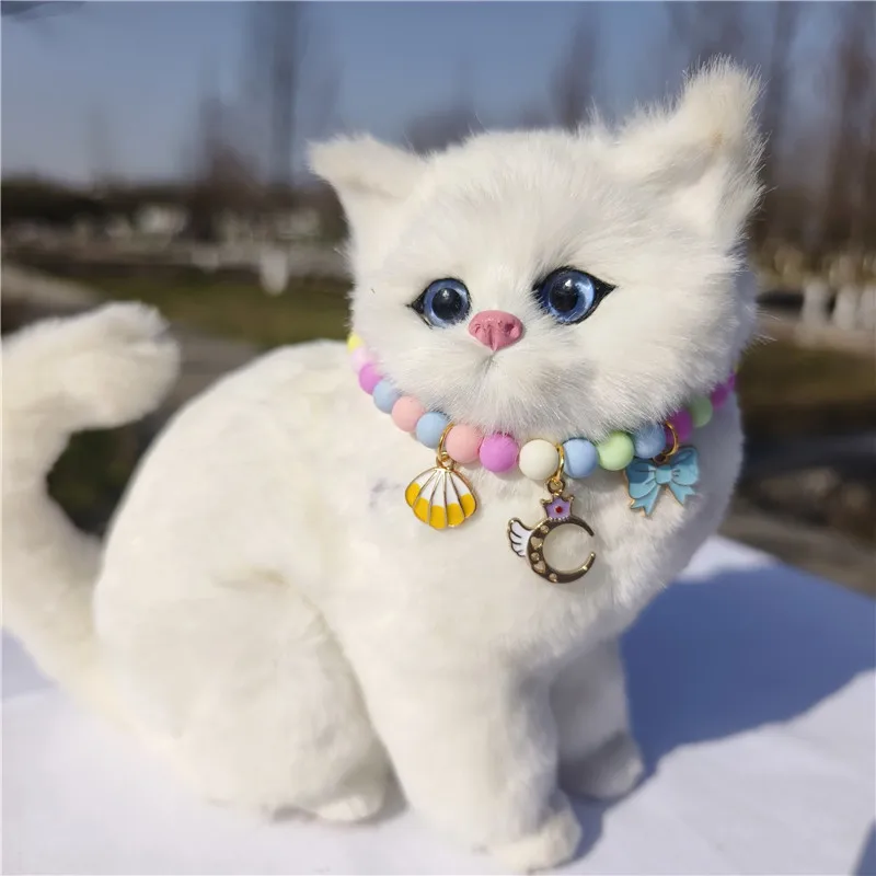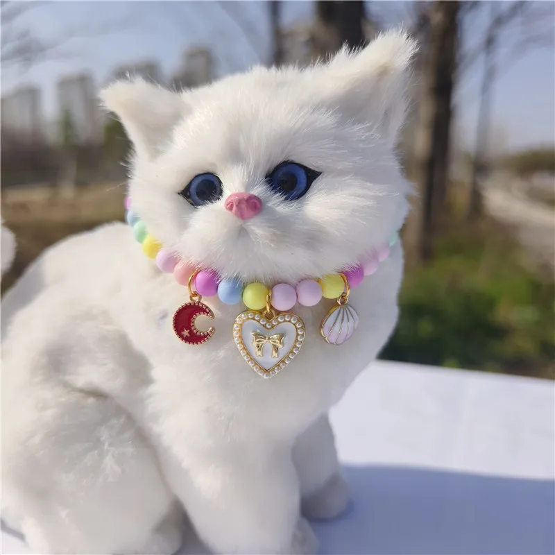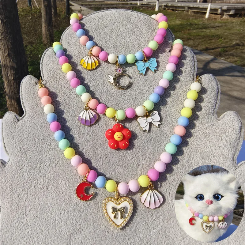 Collar de gato para fiesta, Collar de boda con perlas coloridas, joyería para cachorro, concha de lazo de corona, accesorios para Collar de perro para mascotas