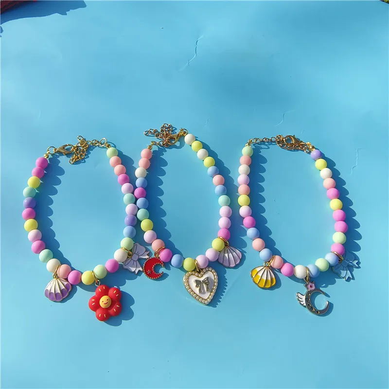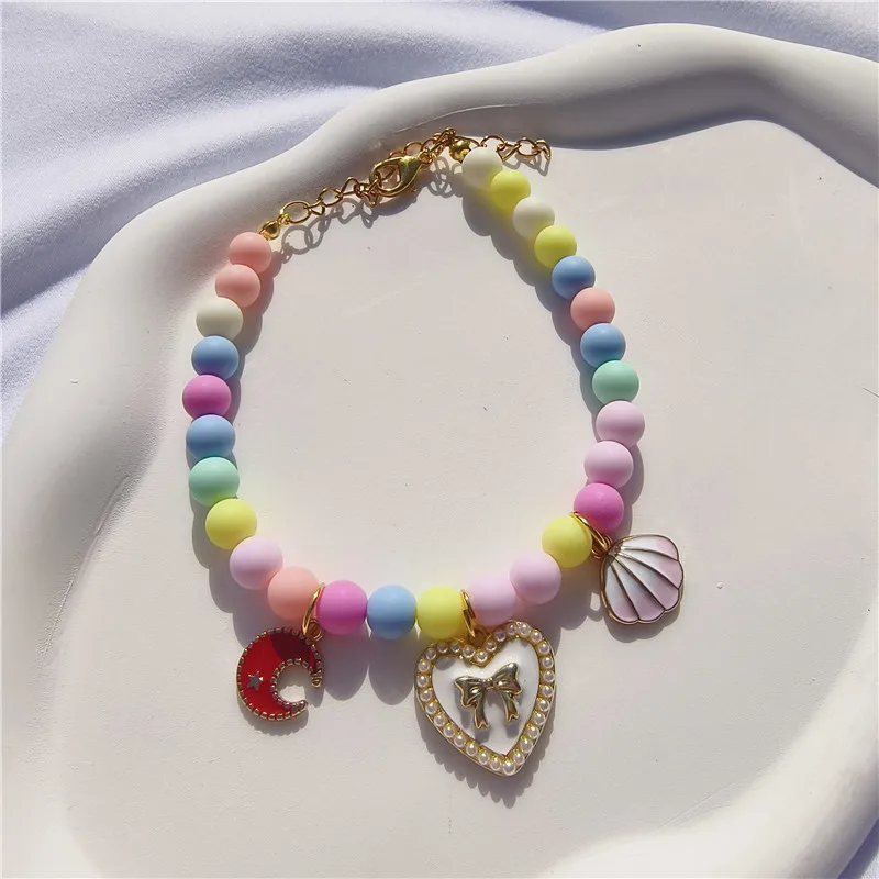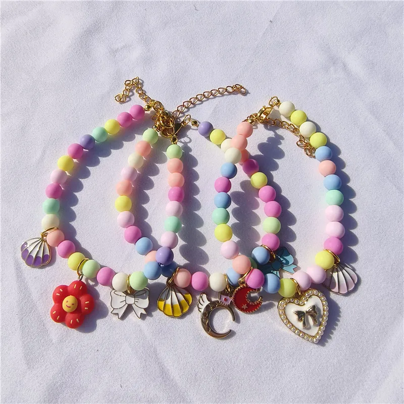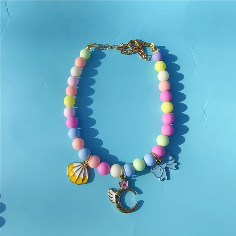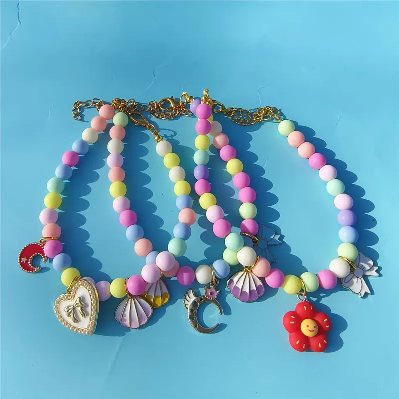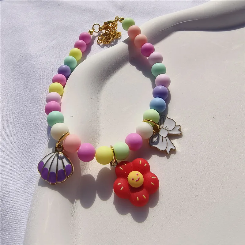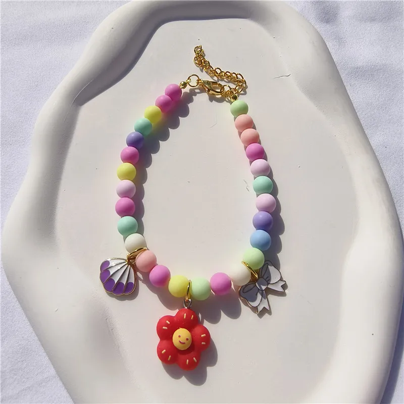 Collar de gato para fiesta, Collar de boda con perlas coloridas, joyería para cachorro, concha de lazo de corona, accesorios para Collar de perro para mascotas