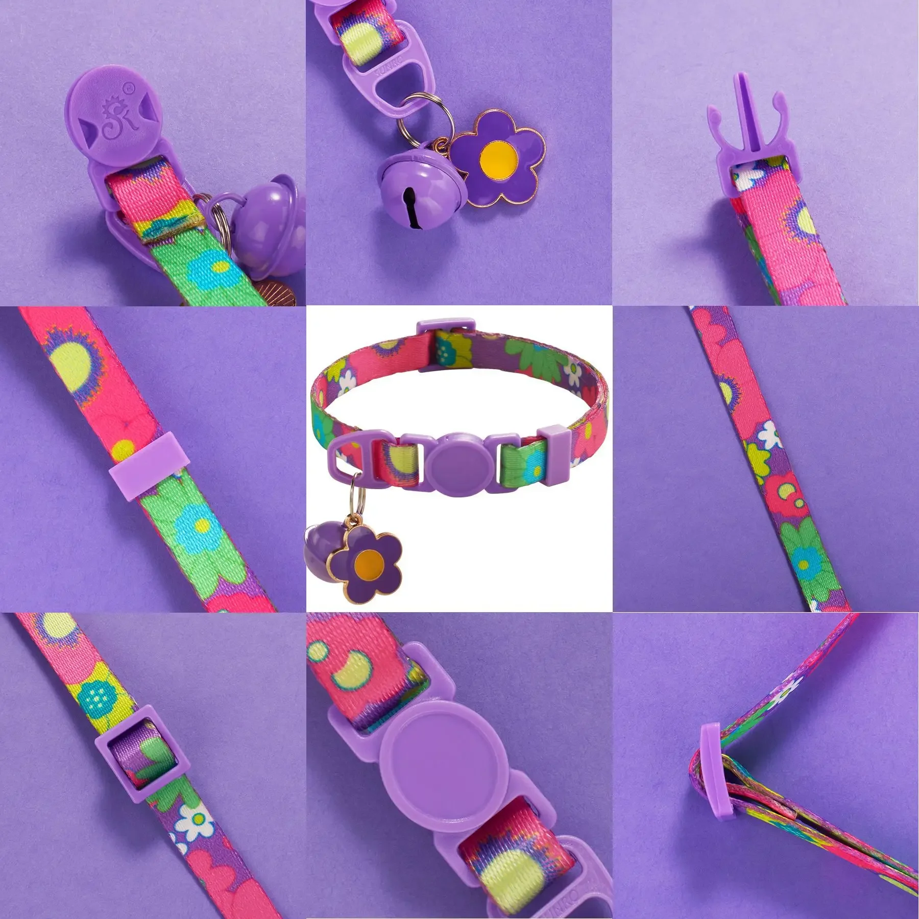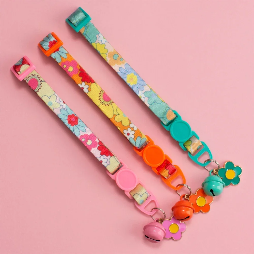 Collar de gato Floral, Collar con colgante de flor colorida, Collar de seguridad desmontable de liberación rápida, Collar de gato con campanas, accesorios para gatos