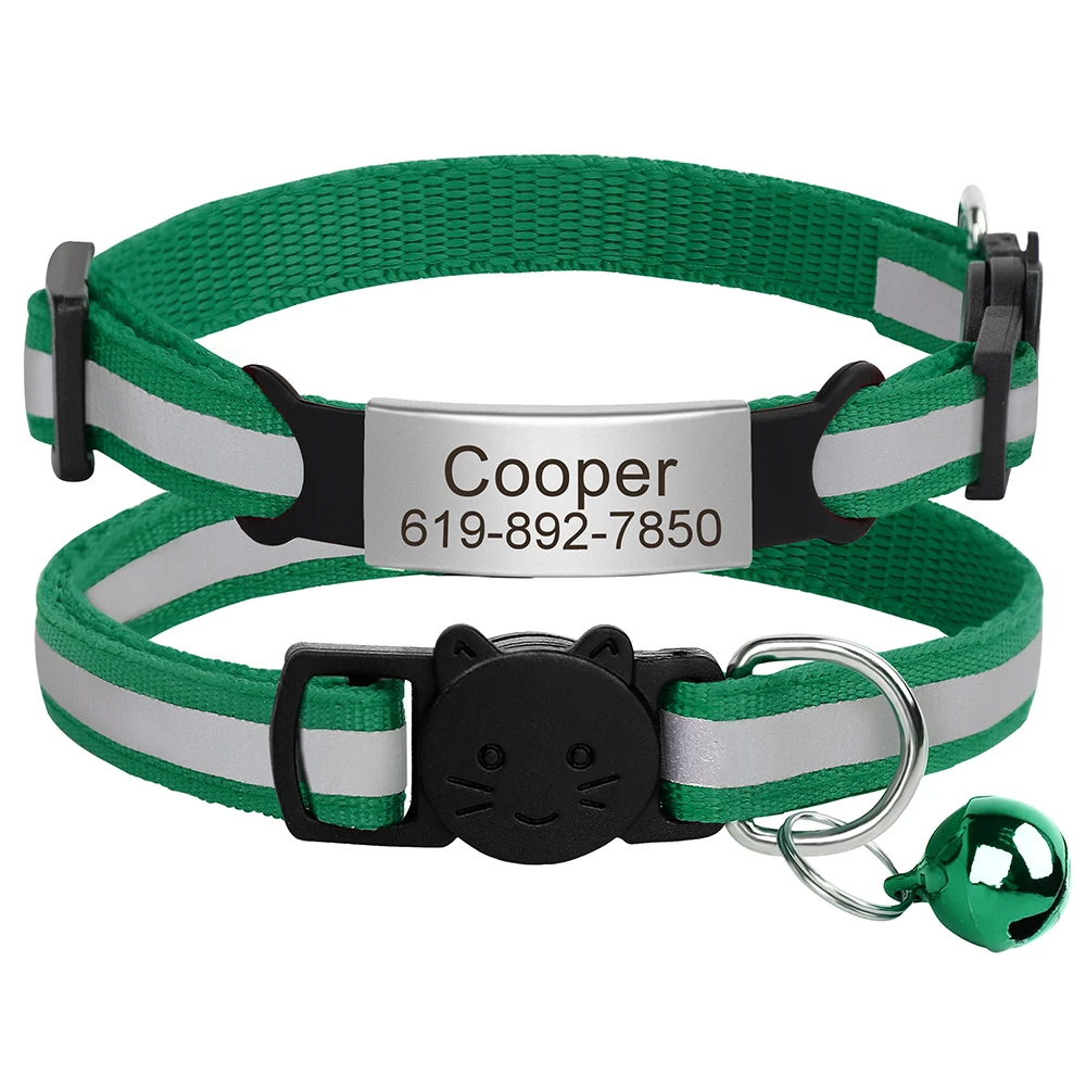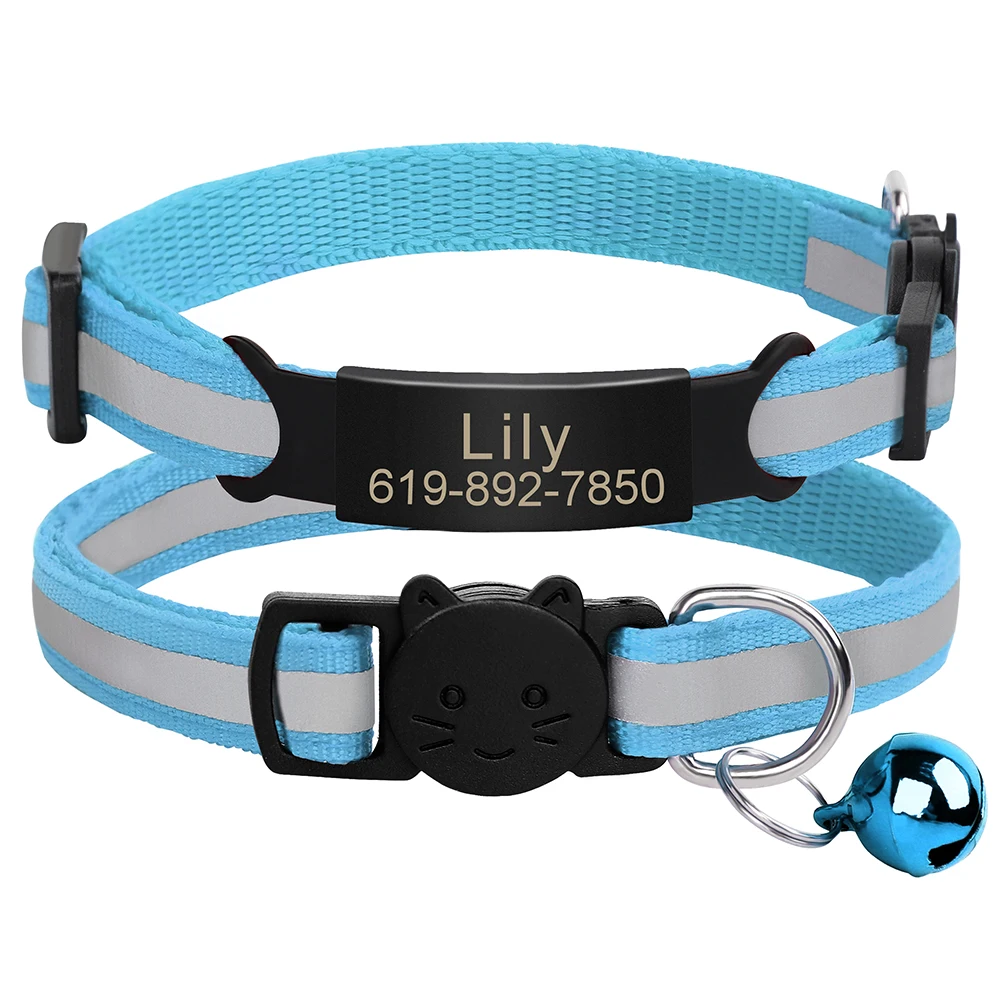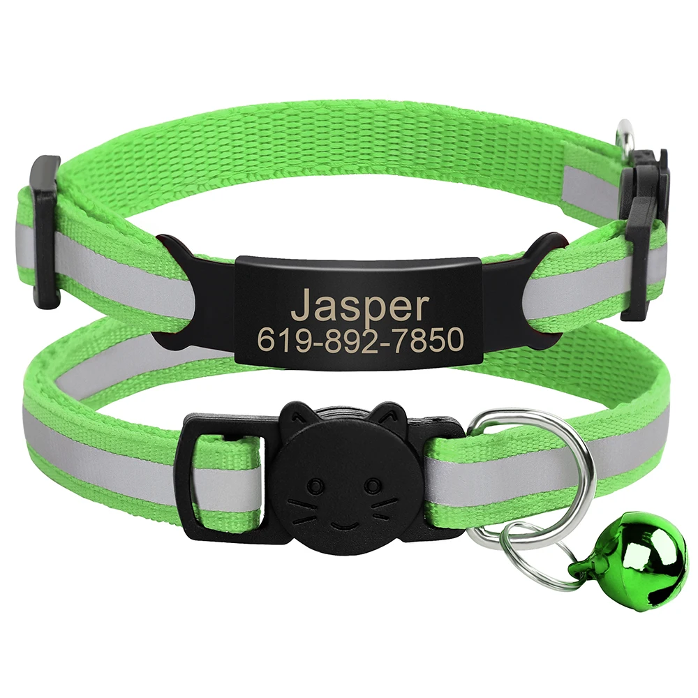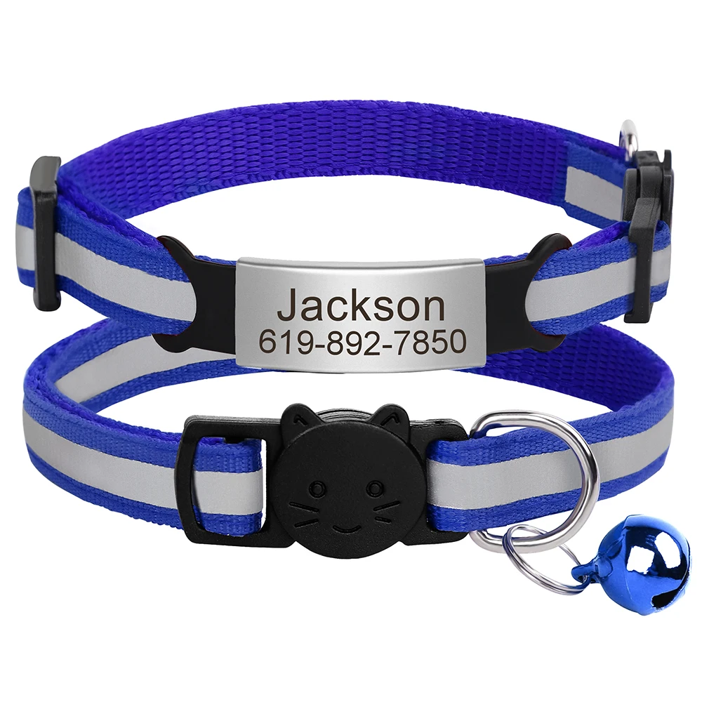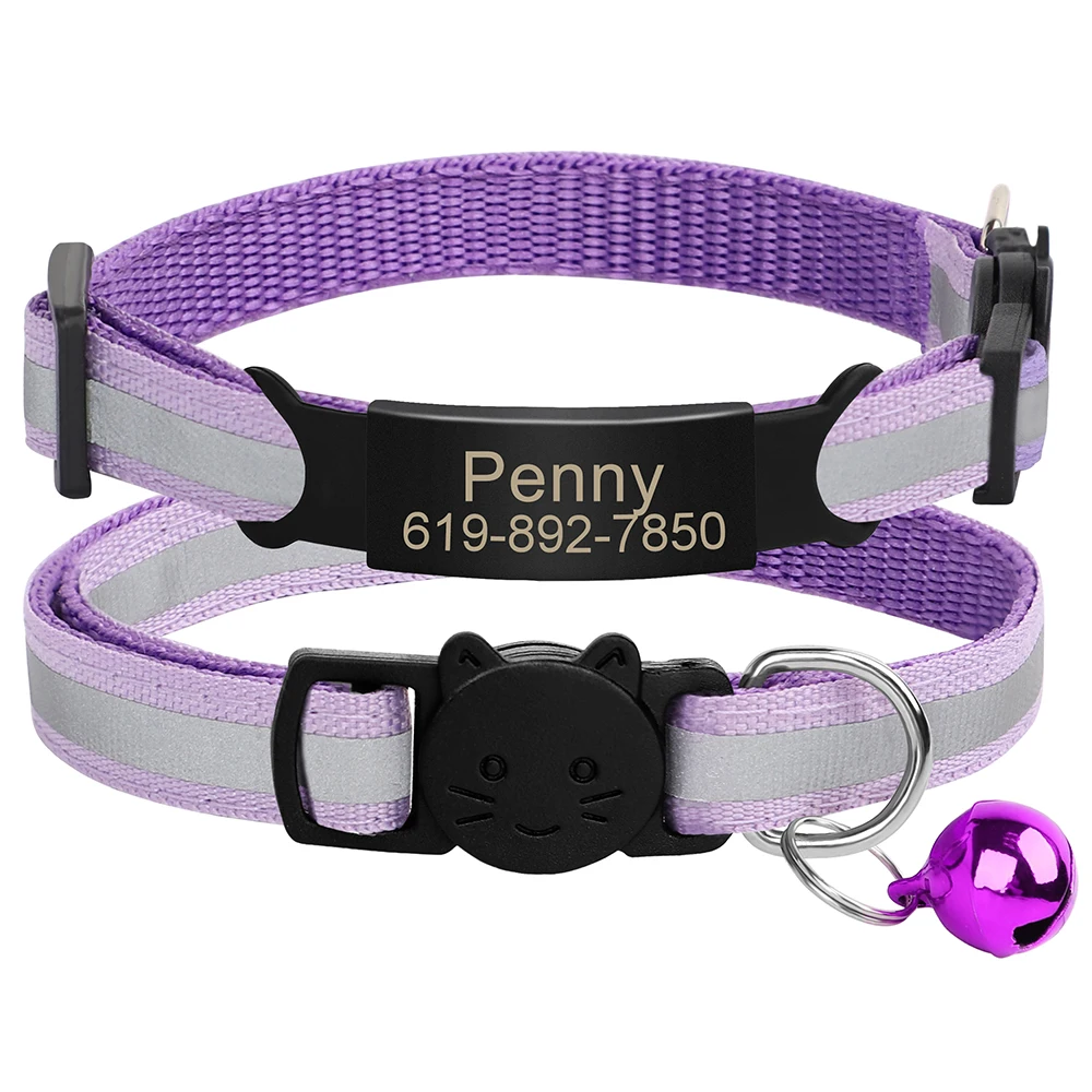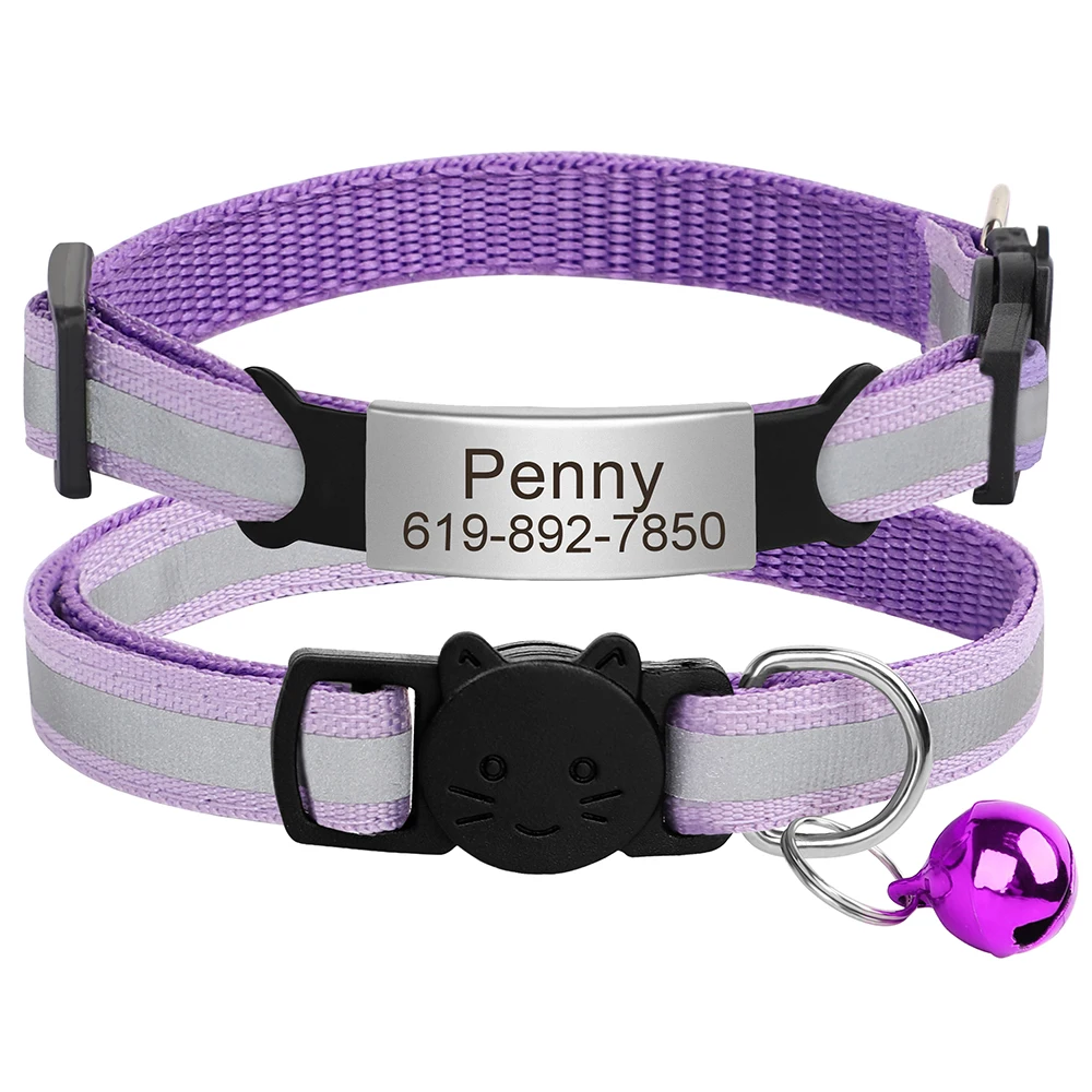 Se ve genial. Nombre del gato con número de teléfono grabado. Durante 5 meses tuve que usar la talla más pequeña, pero se puede ajustar. El color es agradable y la tira reflectante es visible.