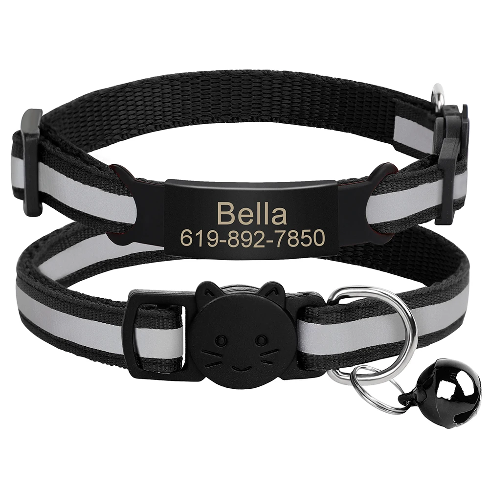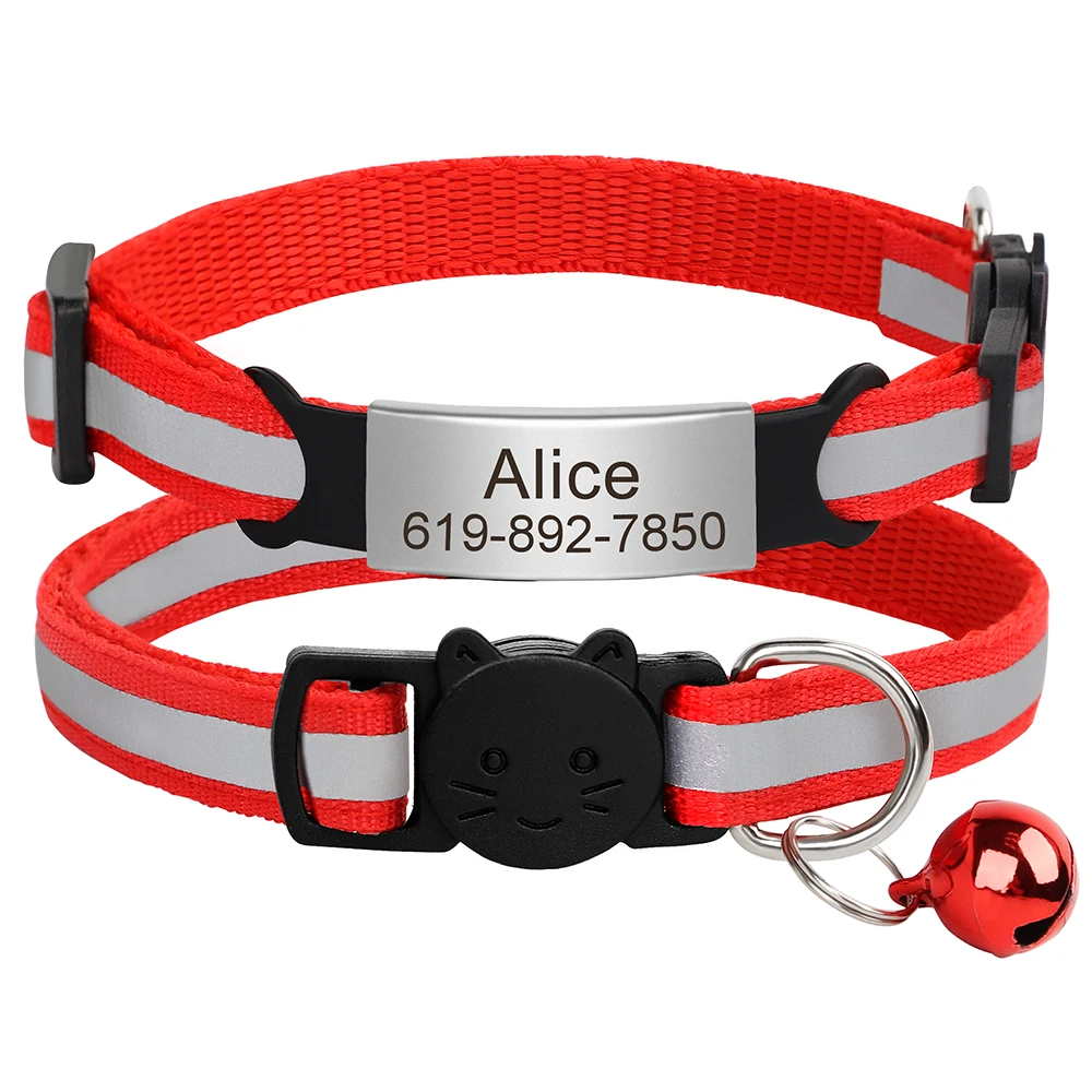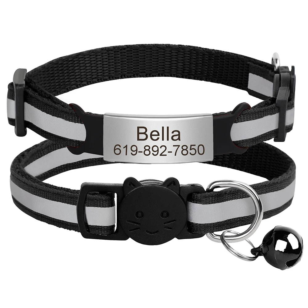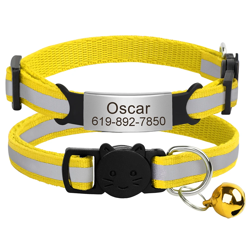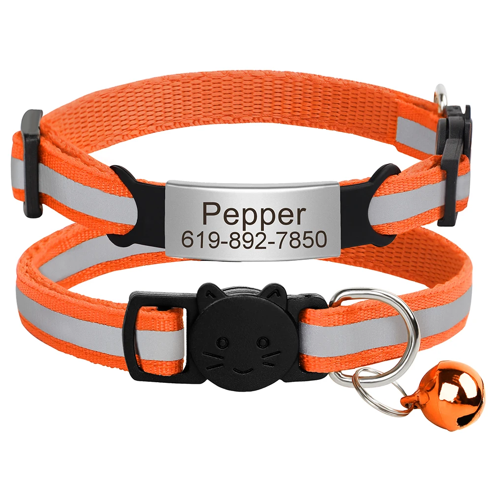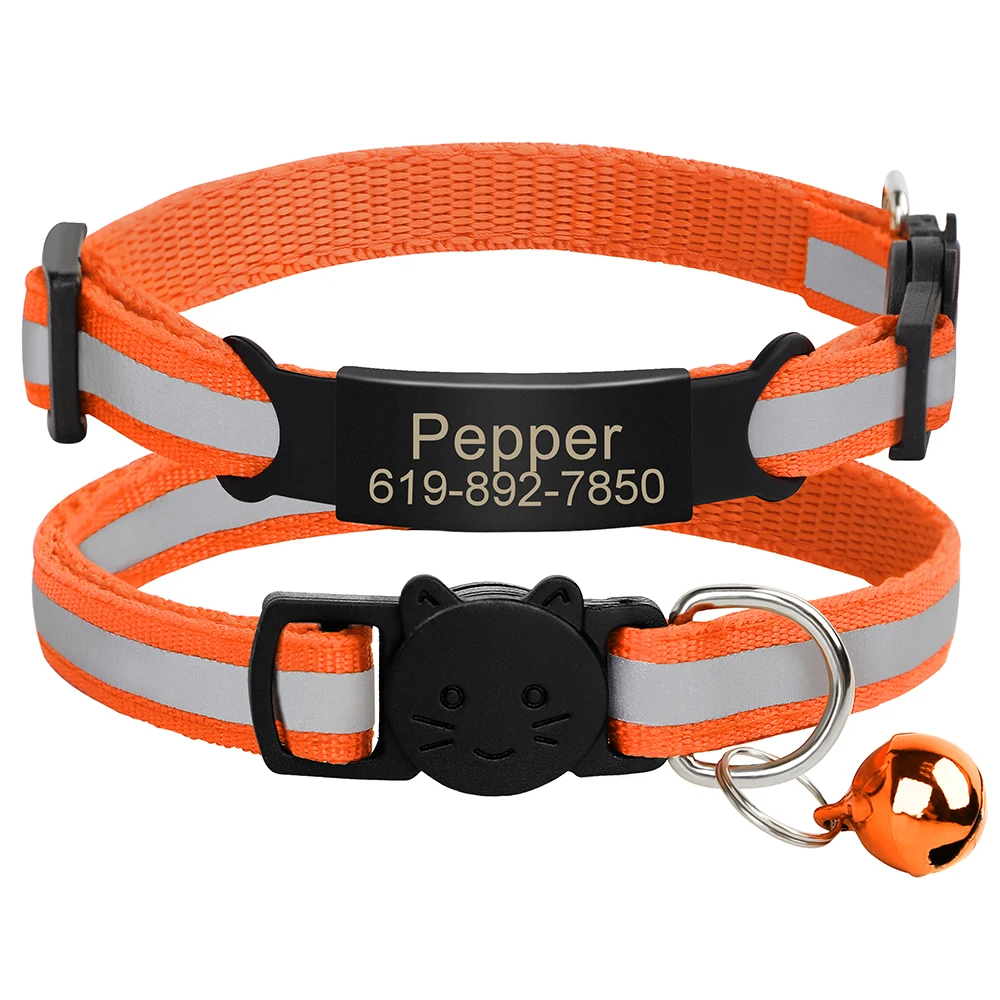 Se ve genial. Nombre del gato con número de teléfono grabado. Durante 5 meses tuve que usar la talla más pequeña, pero se puede ajustar. El color es agradable y la tira reflectante es visible.
