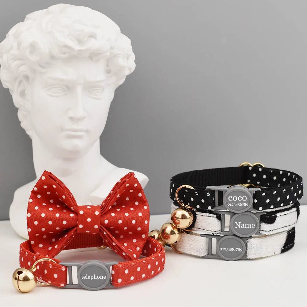 Collar para Gato con Lazo Ajustable, Collar Personalizado de Seguridad con Nombre Suave