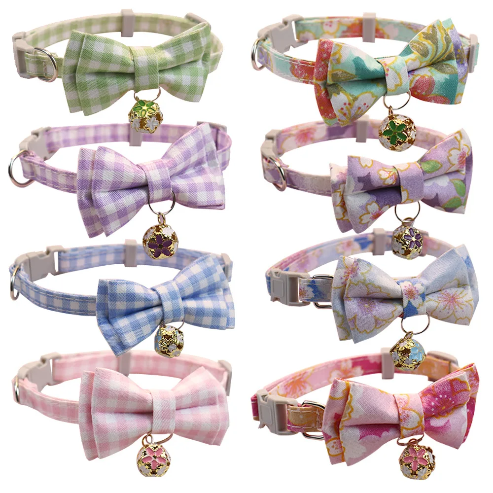 Collar de gato para mascota con lazo de celosía, Collar ajustable para mascota, collar de seguridad para cachorro, gatito, gato, patrón bonito