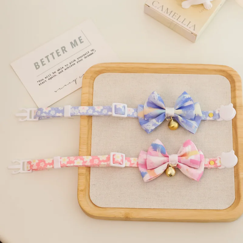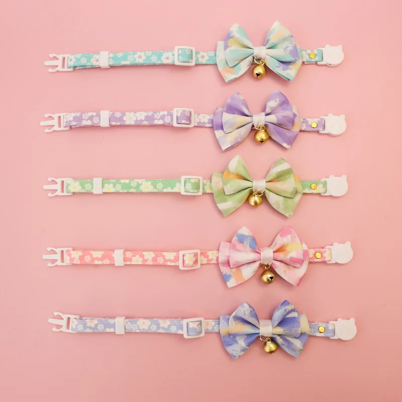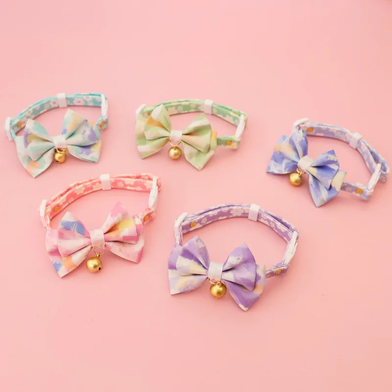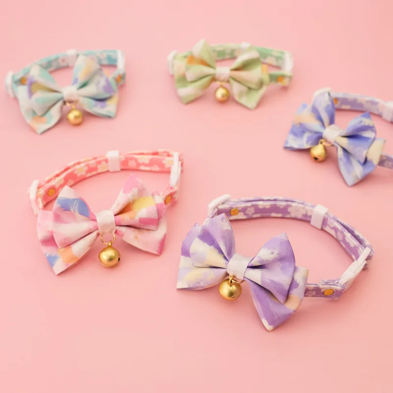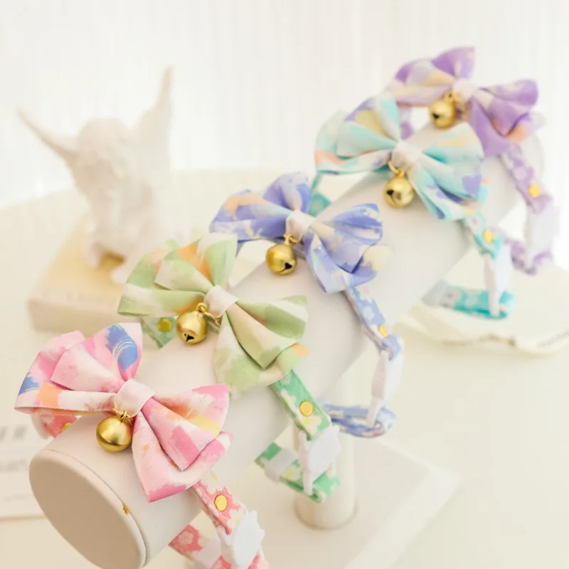 Collar ajustable para gatos con lazo de flores, Collar ajustable para mascotas con campana, collar de flores para gatitos, gatos, cachorros, suministros de seguridad para mascotas
