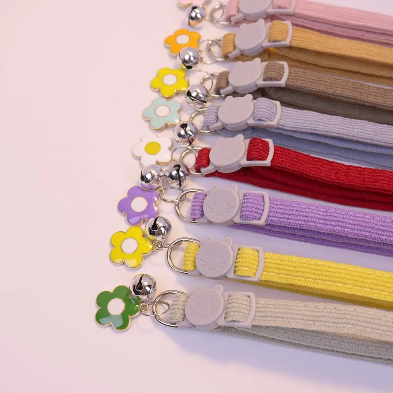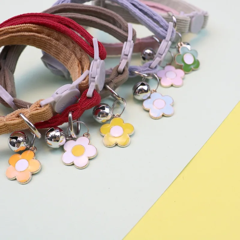 Collar de gato con nombre personalizado, flor de pana separable, identificación personalizada con campana, productos para mascotas, suministros ajustables pequeños para gatitos