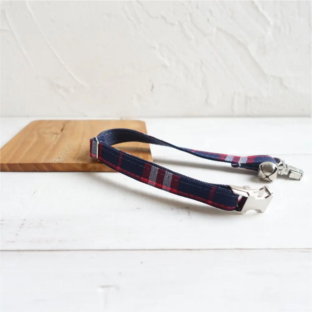Nombre del producto: Collar de gato personalizado con campana, placa de identificación personalizada, hebilla de metal de identificación ajustable, collares de gato a cuadros morados con campana