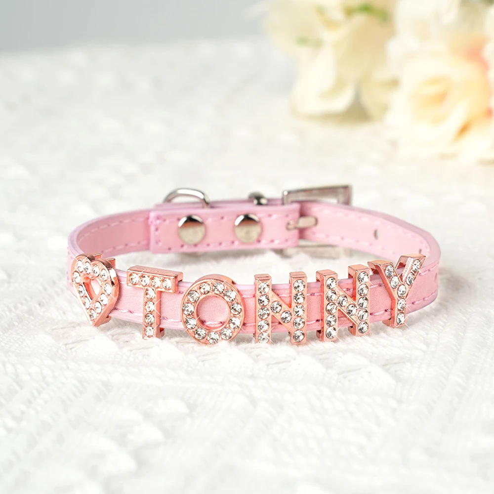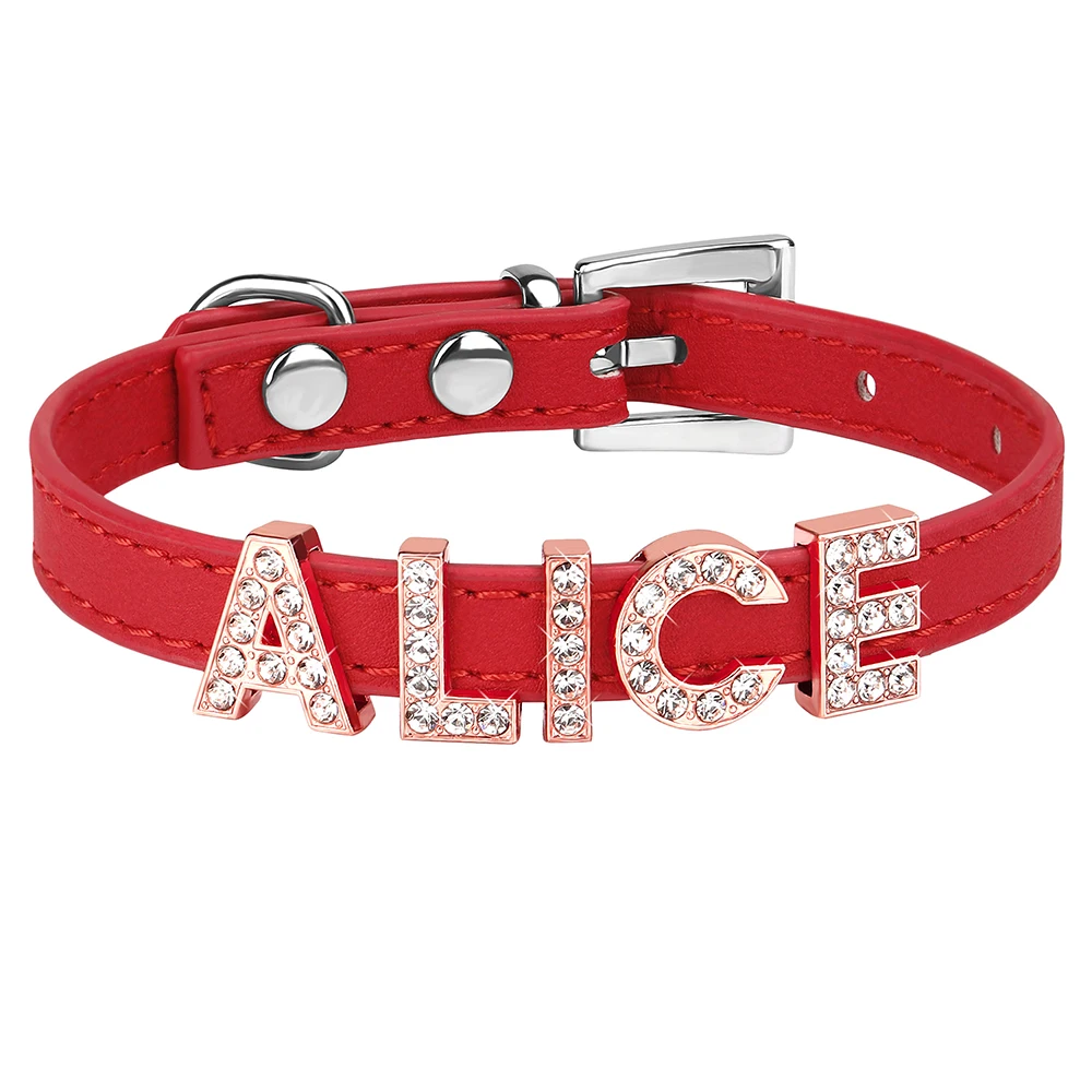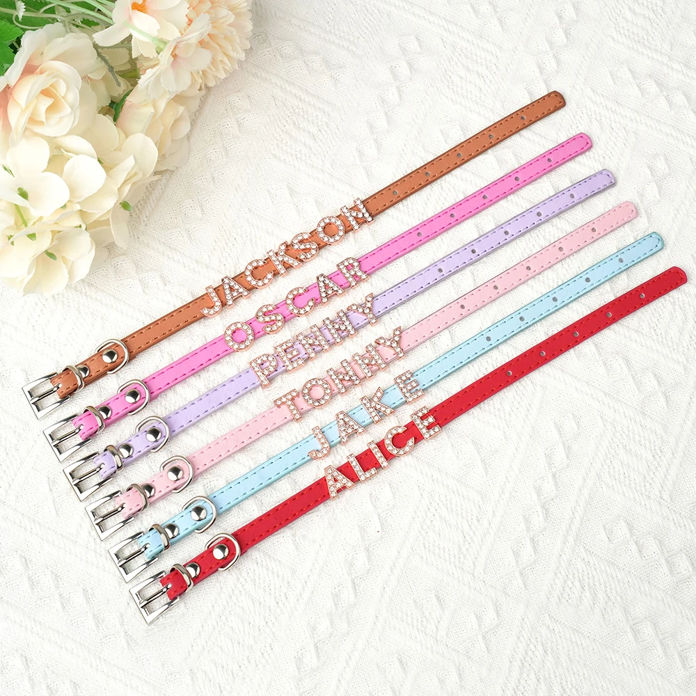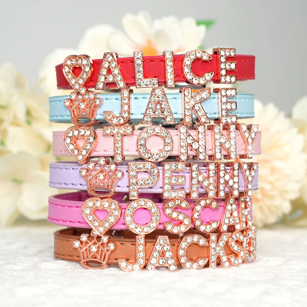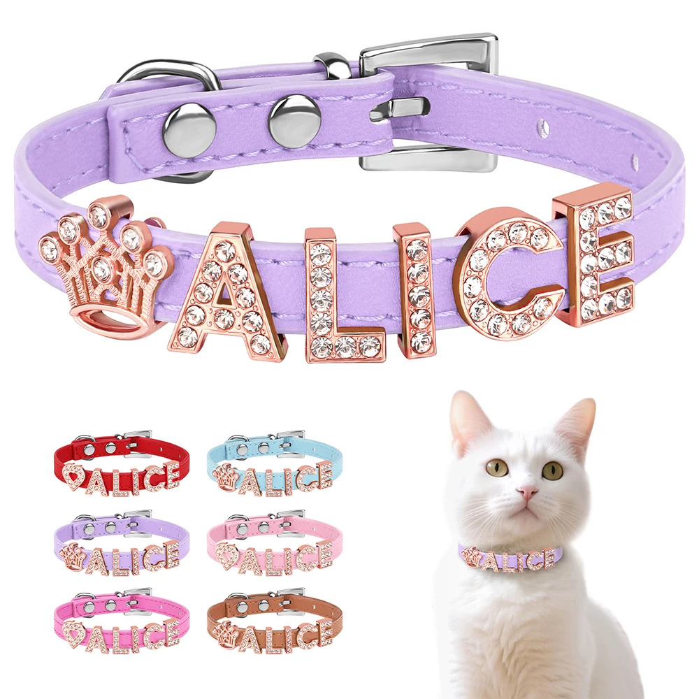 Collar personalizado para gatos, collar personalizado de cuero PU para cachorros y gatitos, collares con dijes con nombre de diamantes de imitación ostentosos gratis para gatos y mascotas pequeñas