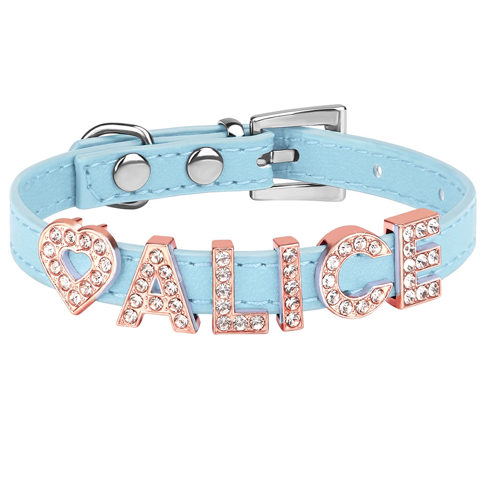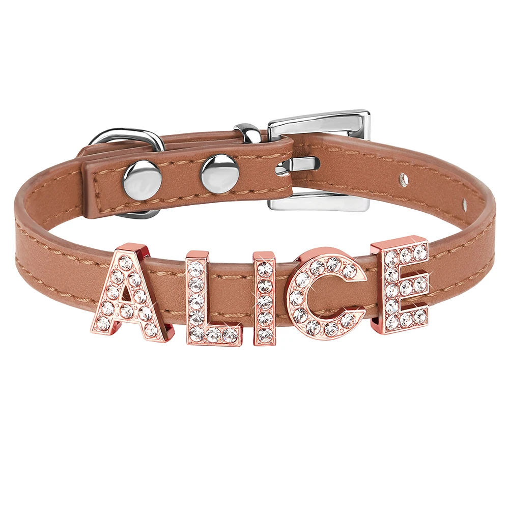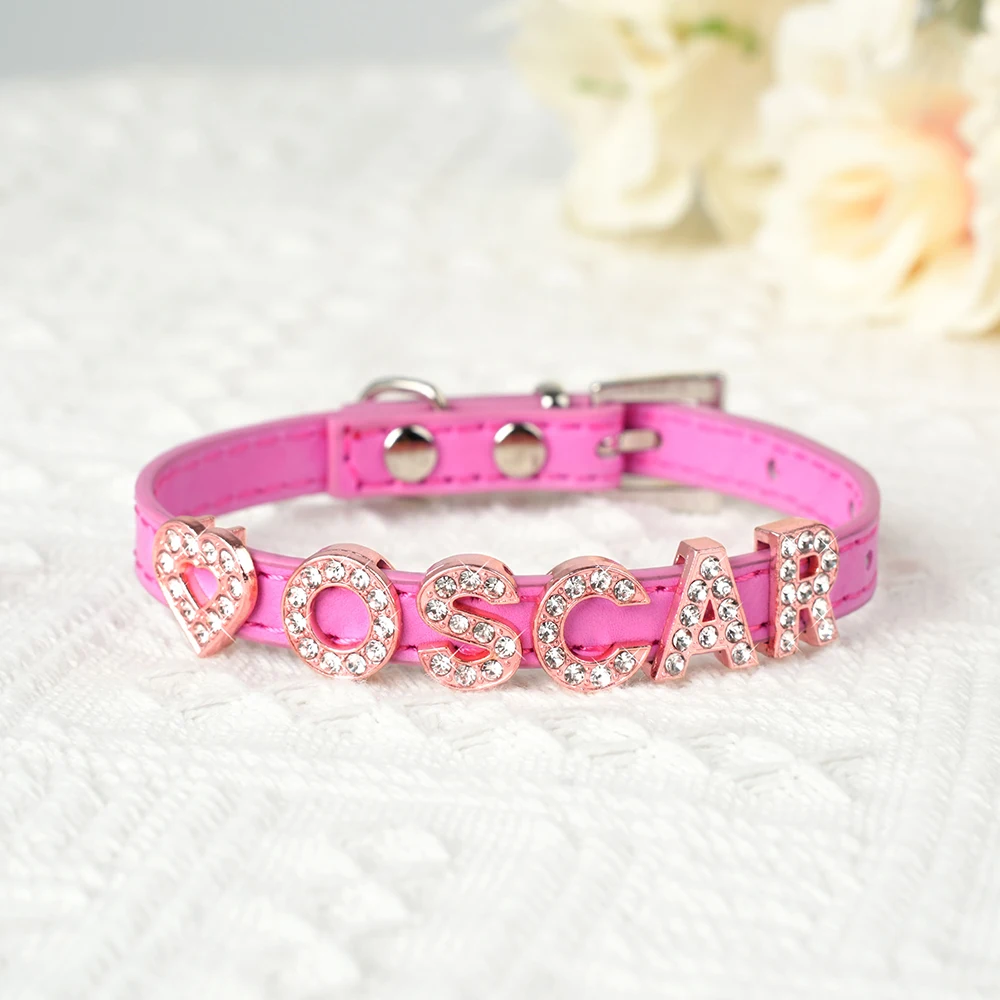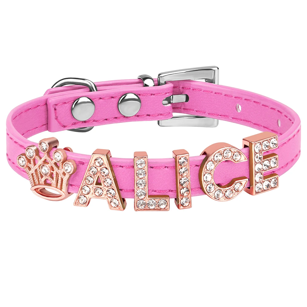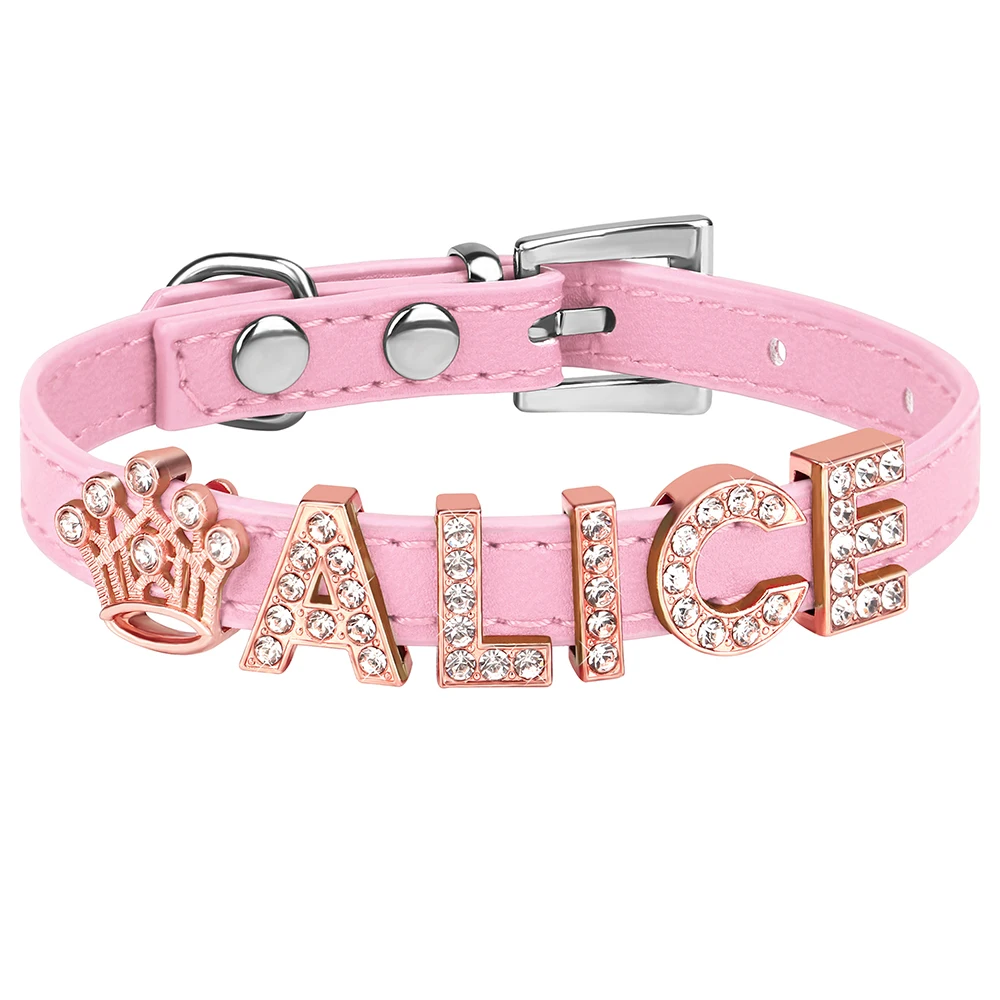 Collar personalizado para gatos, collar personalizado de cuero PU para cachorros y gatitos, collares con dijes con nombre de diamantes de imitación ostentosos gratis para gatos y mascotas pequeñas