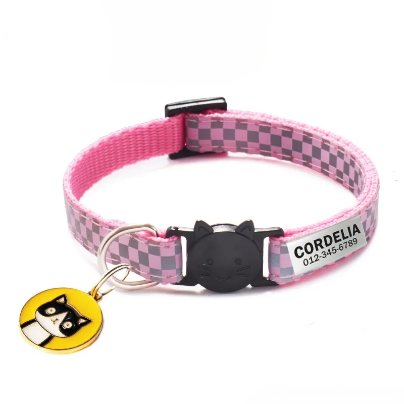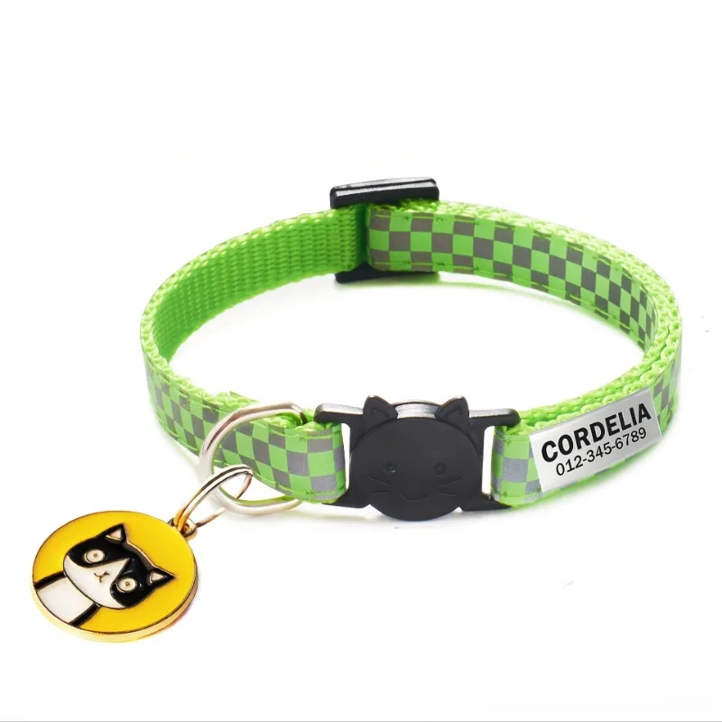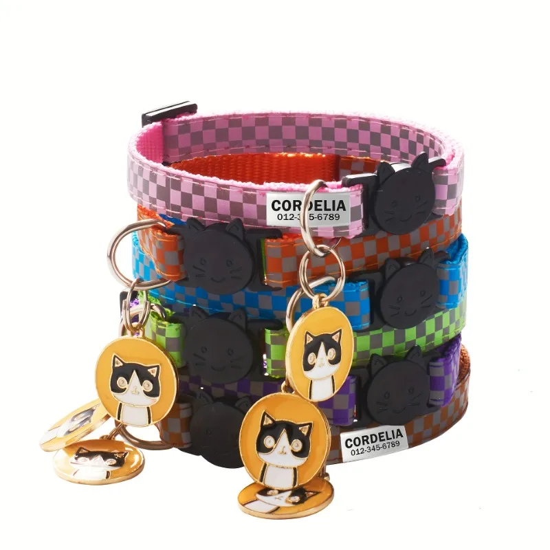 Collar de gato personalizado, Collar reflectante para gato, grabado, cachorro, gatito, identificación de mascota, placa con nombre, collar con campana, antipérdida para gatos