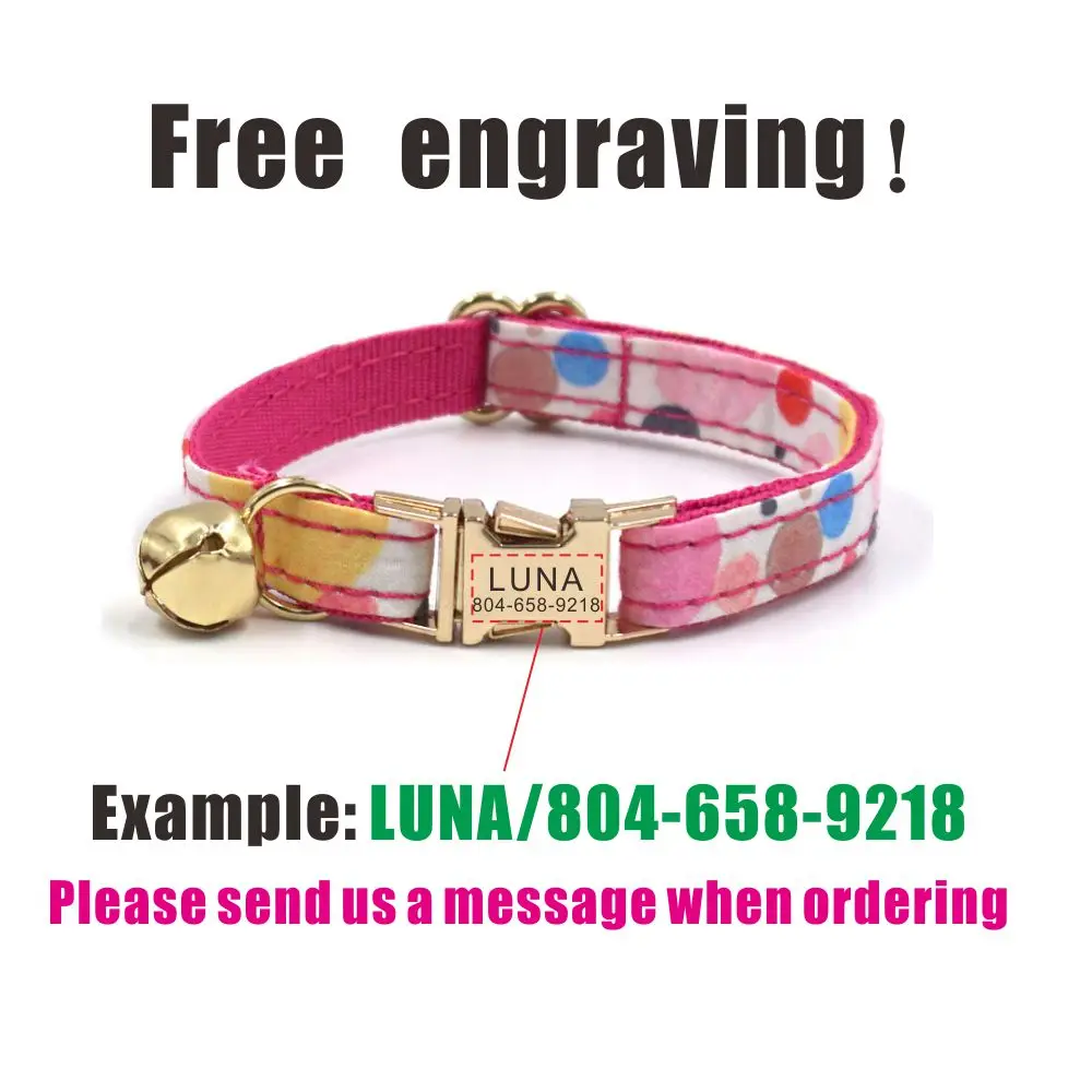 Nombre del producto: Collar de gato personalizado, contacto con nombre de identificación personalizado, hebilla de metal, collares de gato de burbujas de colores ajustables con campana