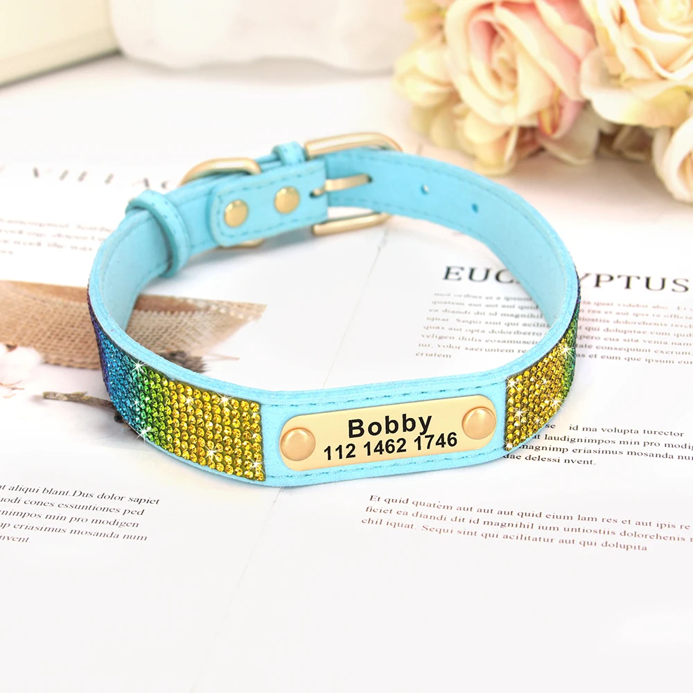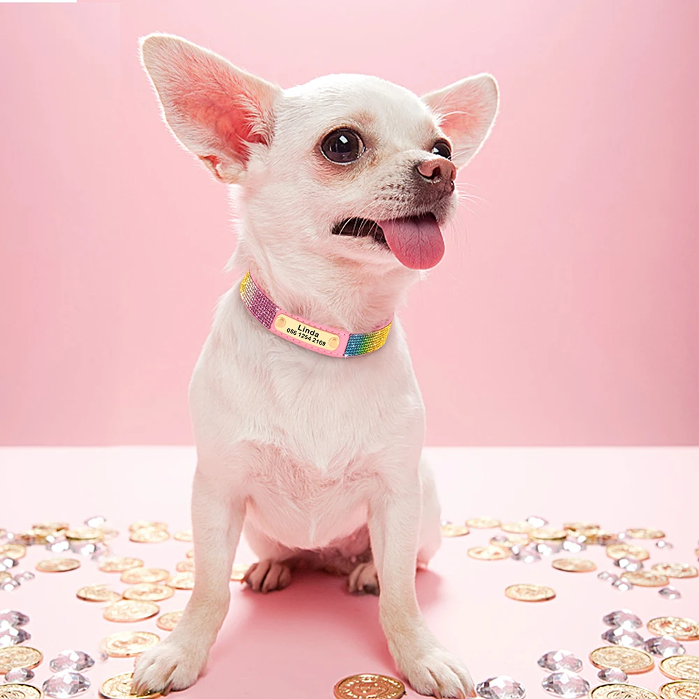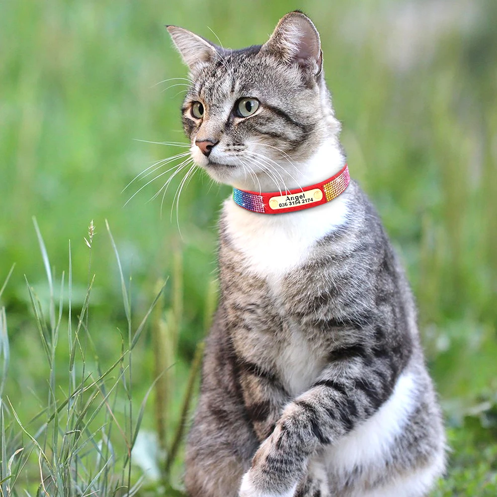 Collar de gato personalizado con diamantes de imitación brillantes, collares para perros pequeños y gatos, collar de identificación personalizado gratis para gatitos y cachorros, accesorios para mascotas