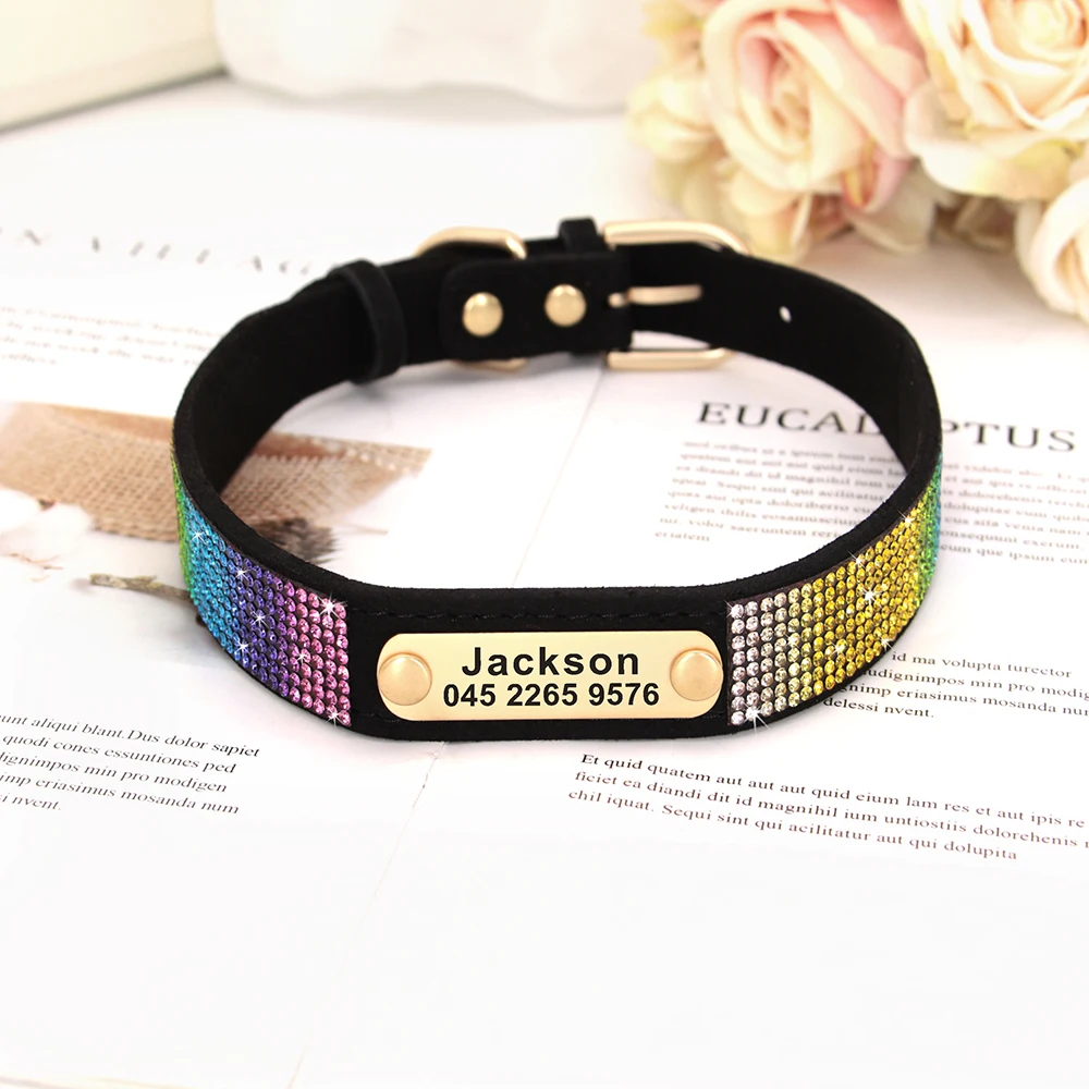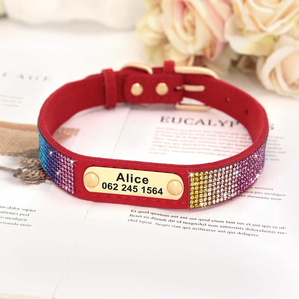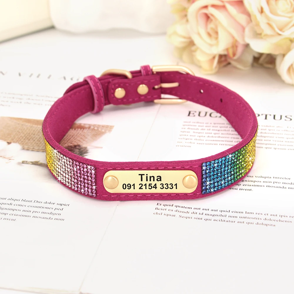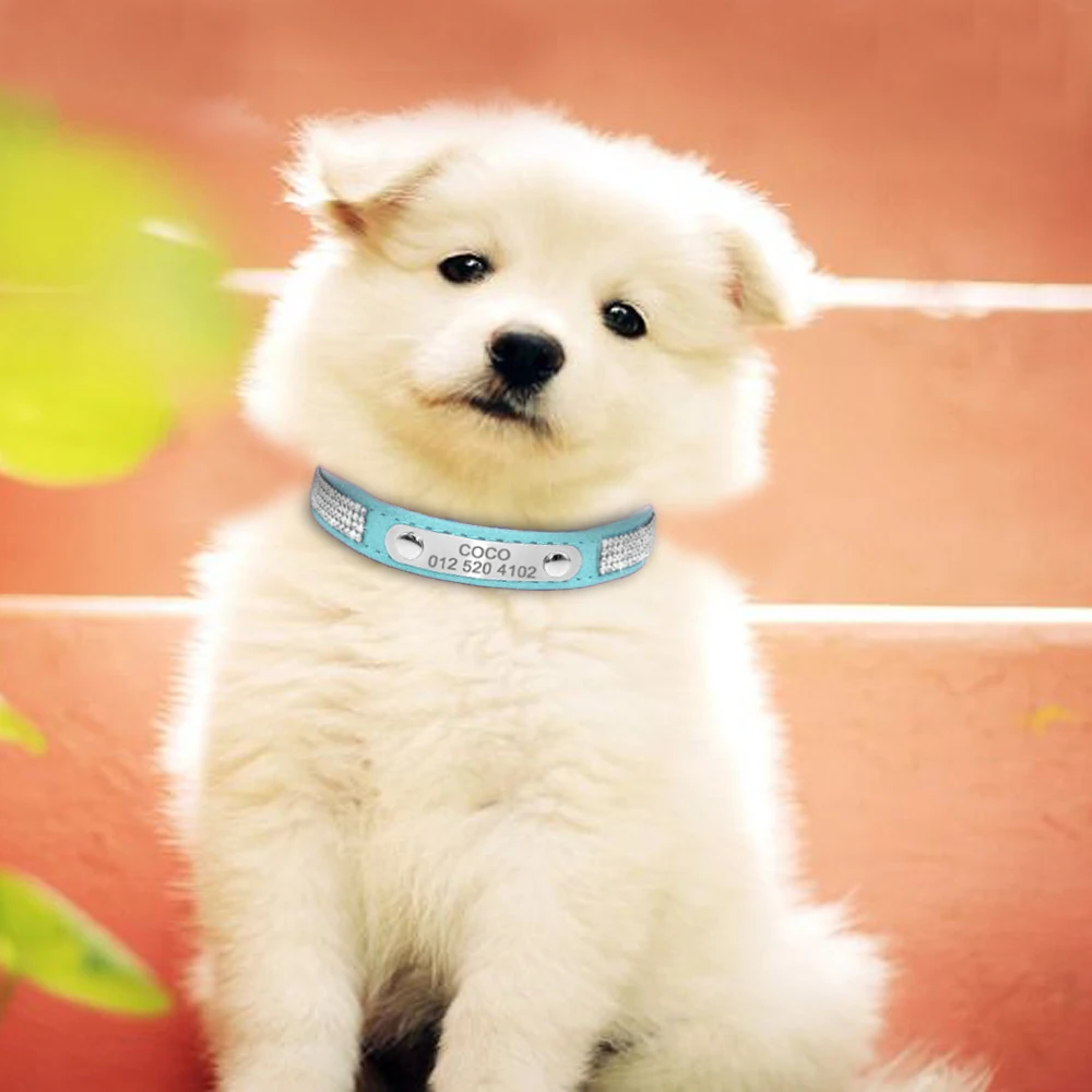 Collar de gato personalizado con diamantes de imitación brillantes, collares para perros pequeños y gatos, collar de identificación personalizado gratis para gatitos y cachorros, accesorios para mascotas