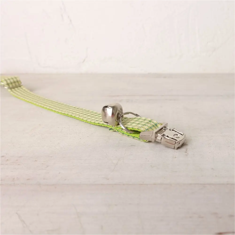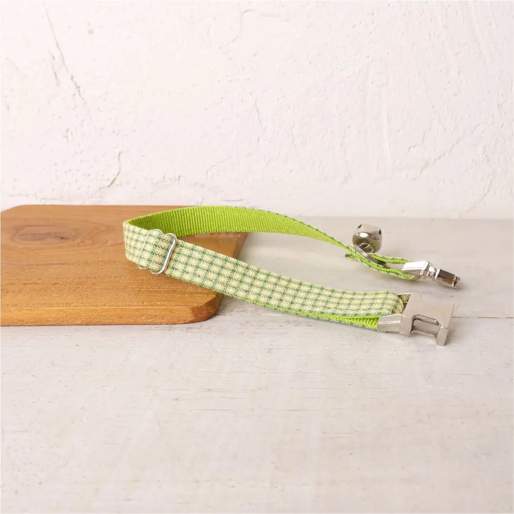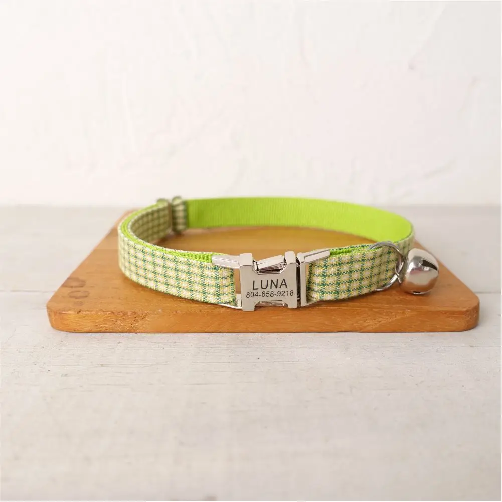 Nombre del producto: Collar de gato personalizado con grabado gratuito, correa para mascotas a juego, hebilla de metal con contactos personalizados, Collar para mascotas a cuadros verde y amarillo