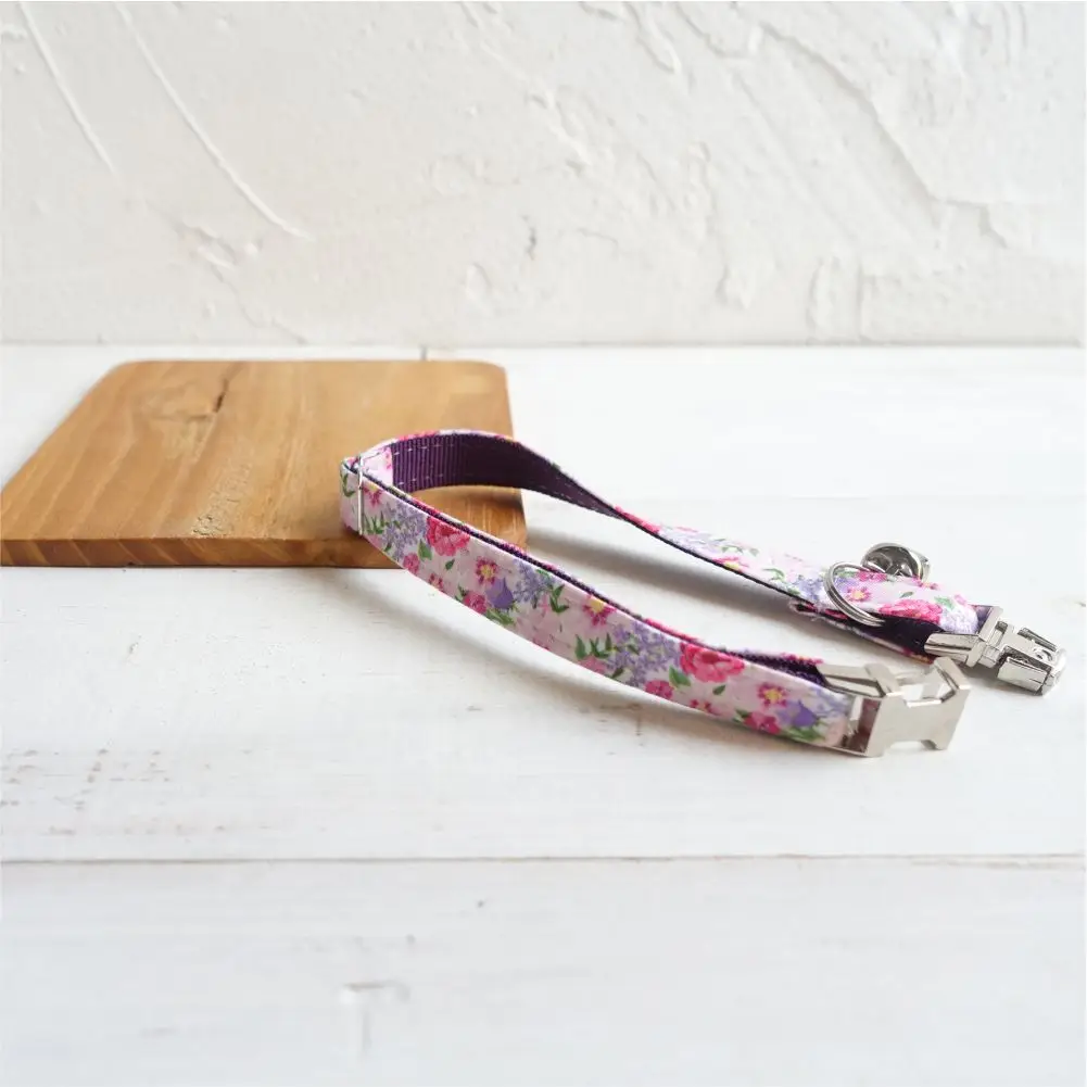 Product Name: Personalized Cat Collar with Free Engraving, Matching Pet Leash,Customzied Contacts Metal Buckle, Purple Flower Small Pet Collar