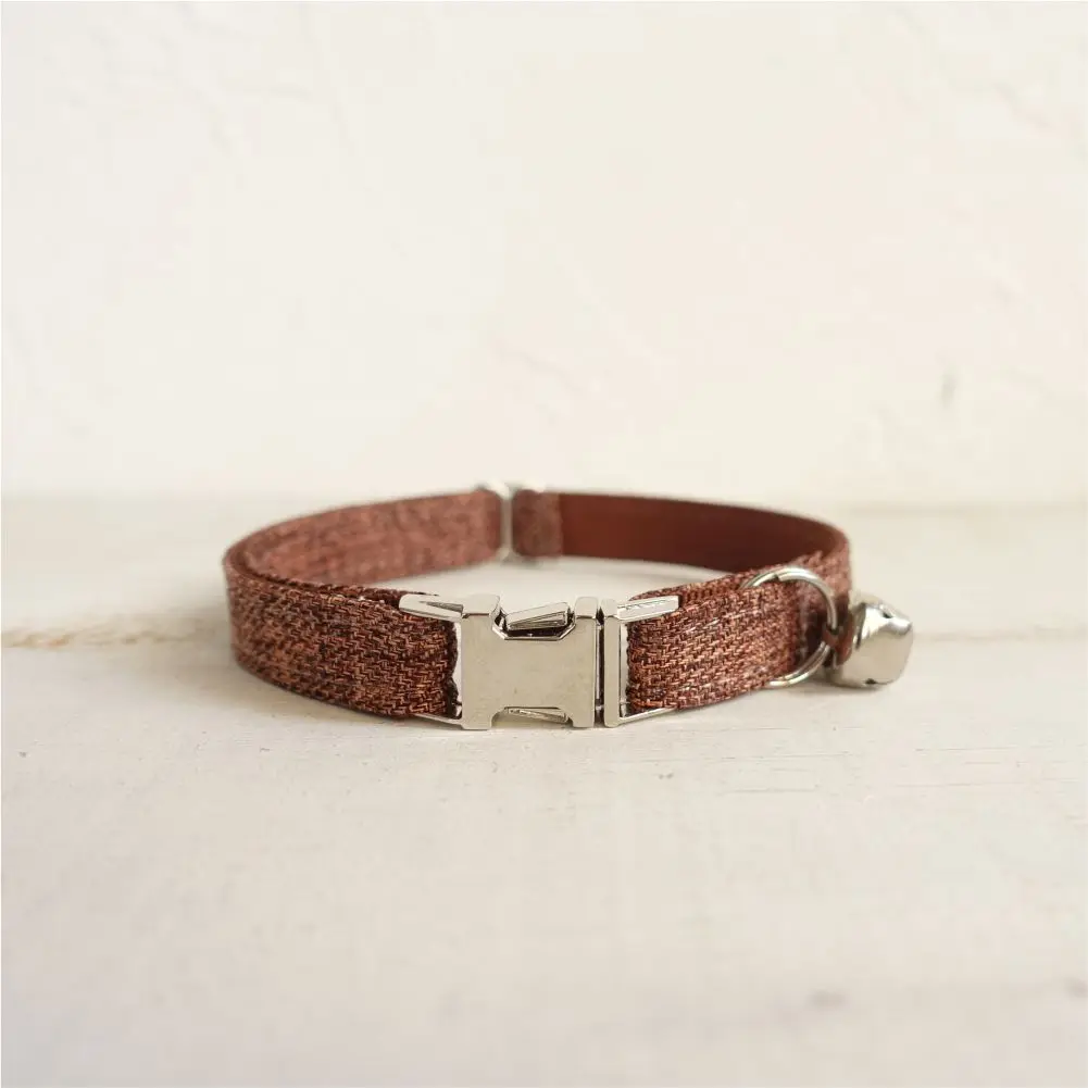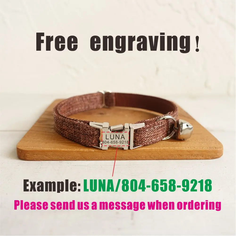 Nombre del producto: Collar de gato personalizado con grabado gratuito, correa para mascotas a juego, hebilla de metal con contactos personalizados, collar para mascotas pequeño de traje marrón