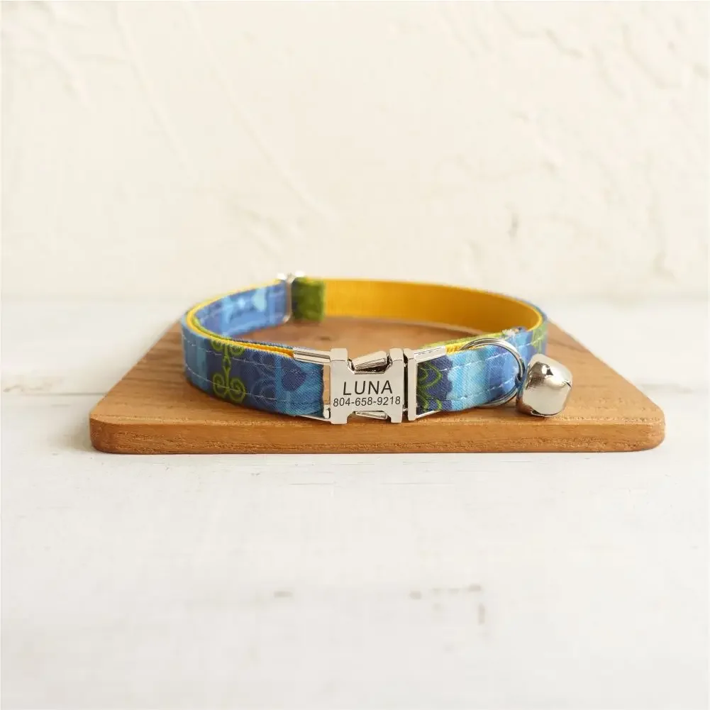 Nombre del producto:Collar para gatos personalizado con grabado gratuito, correa para mascotas a juego, hebilla de metal con contactos personalizados, collar para mascotas pequeño