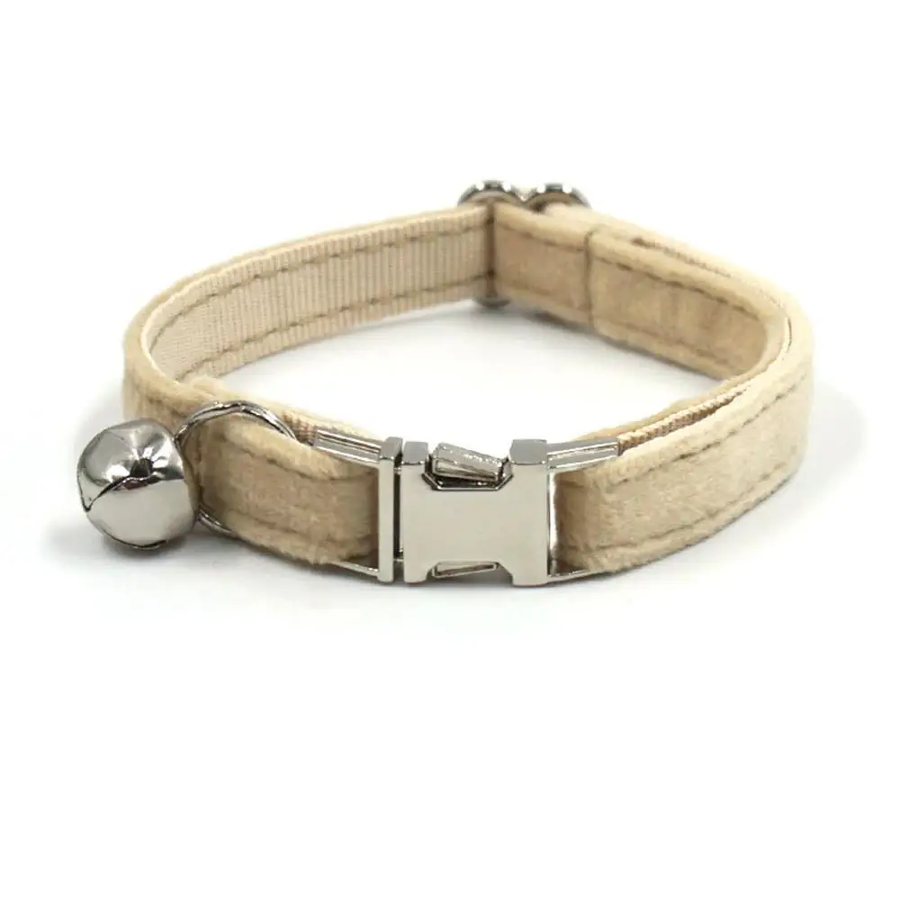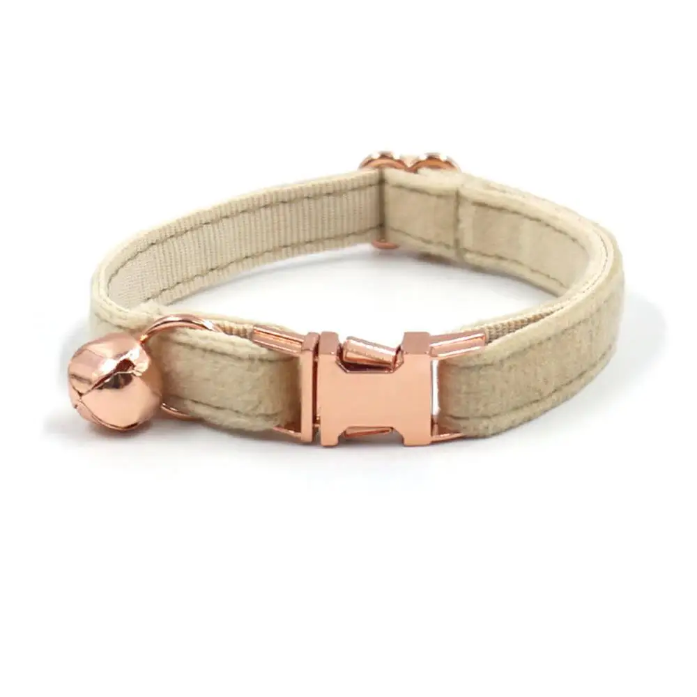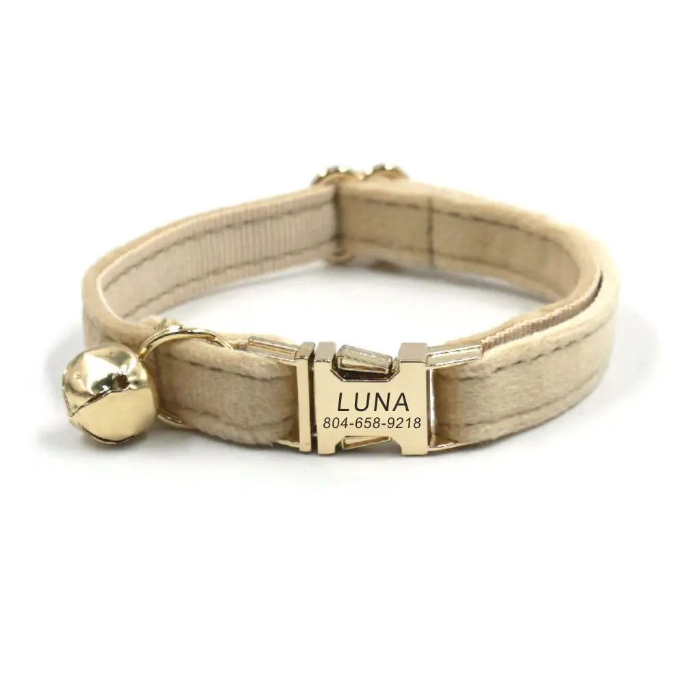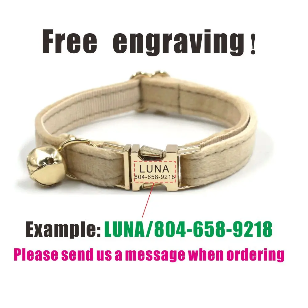Collar para gatos personalizado con grabado gratuito, correa para mascotas a juego, hebilla de metal con contactos personalizados, collar para mascotas de terciopelo grueso beige