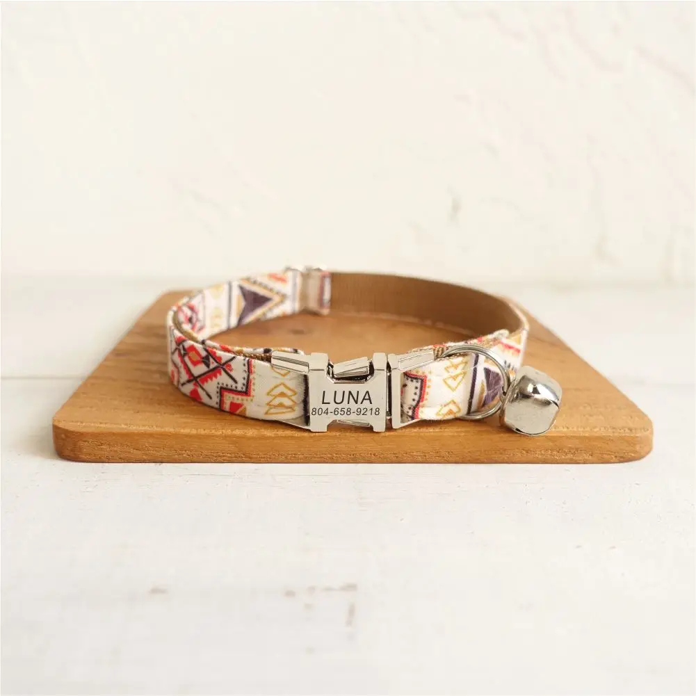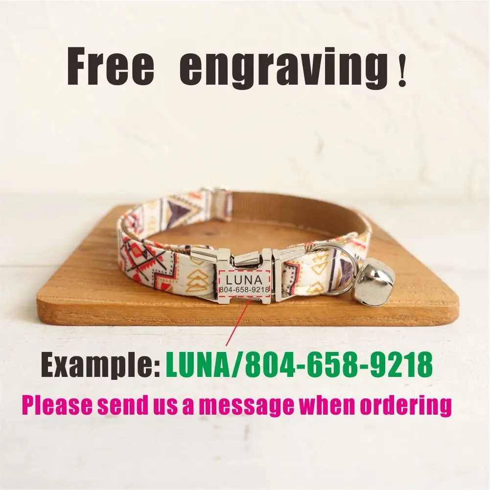 Nombre del producto: Collar personalizado para gatos con grabado gratuito, correa para mascotas a juego, hebilla de metal con contactos personalizados, collar marrón para mascotas pequeño