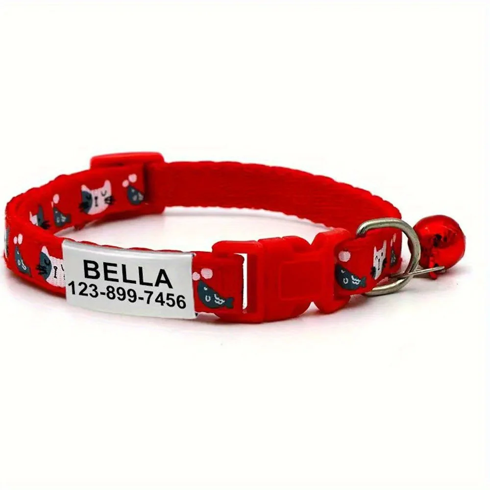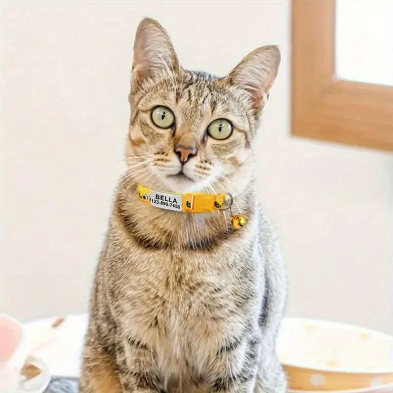 No tiene cierre de seguridad para gatos. El collar es mono y los datos de nombre y tlf se ven claros.