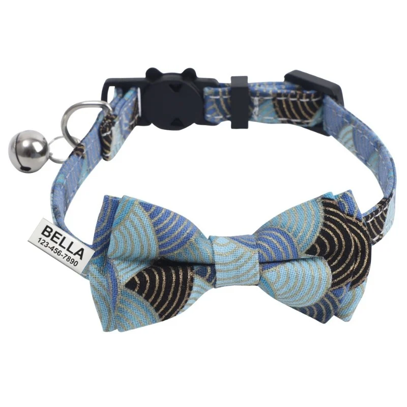 Collar de gato personalizado con nombre de campana, Collar de nailon con etiqueta de identificación personalizada para Collar de gato, pajarita, Collar de perro pequeño para cachorro, collar de gatito