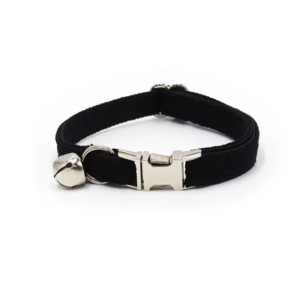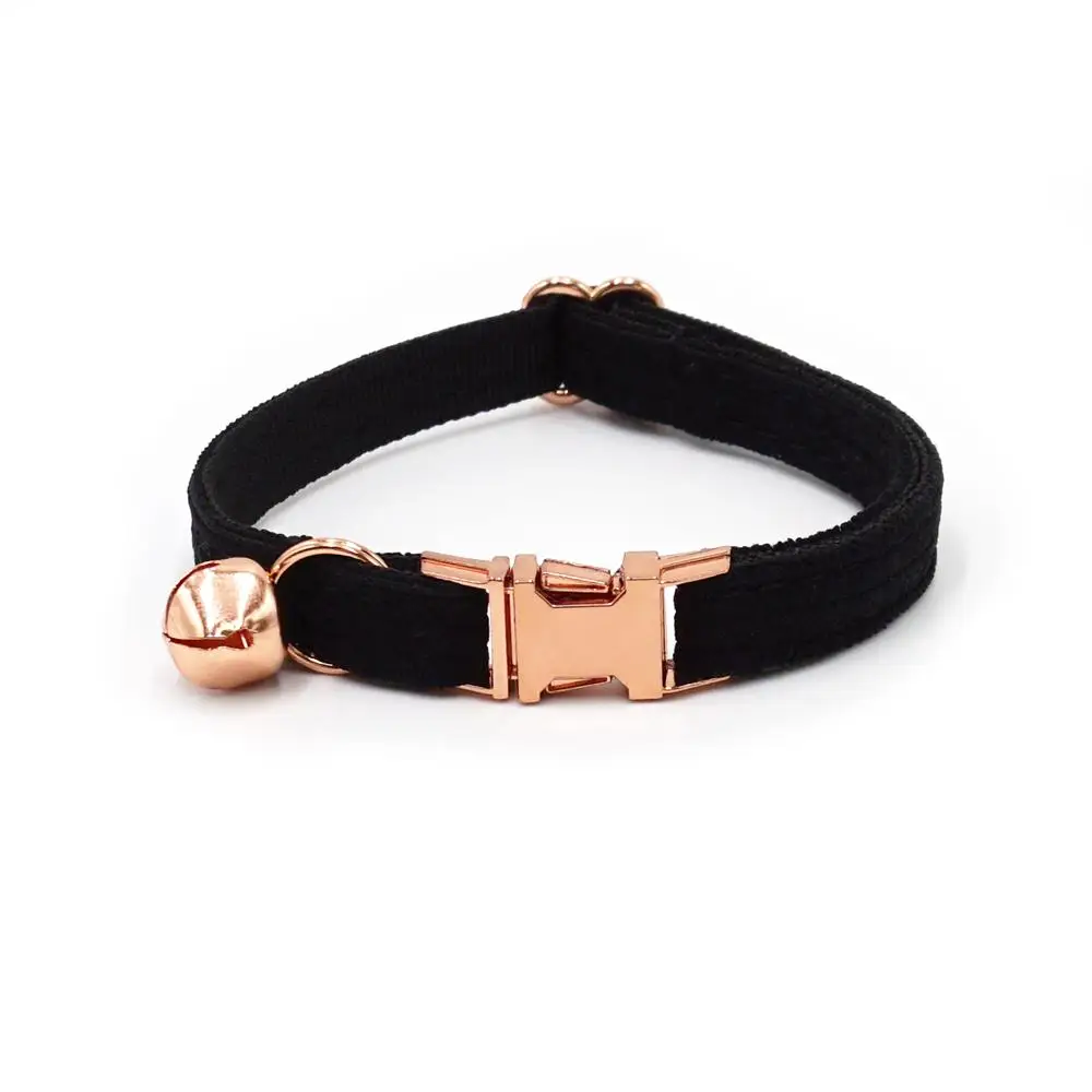 Collar de gato personalizado, placa con identificación personalizada, hebilla de Metal, collares de gato de terciopelo negro ajustables con campana