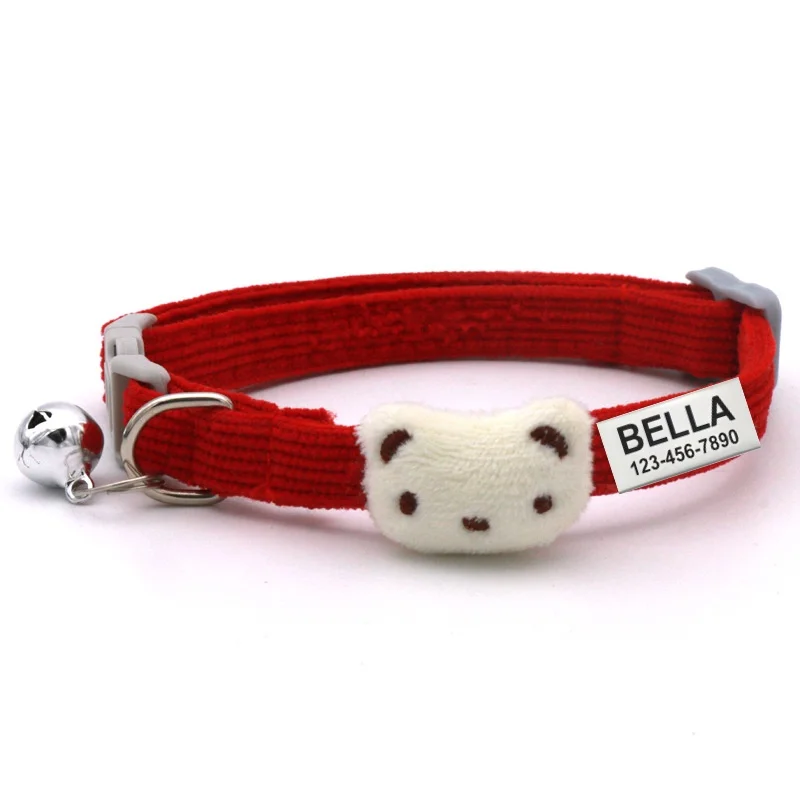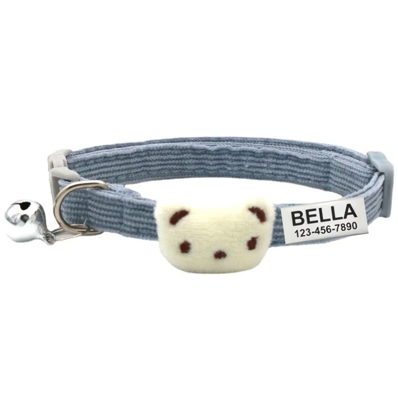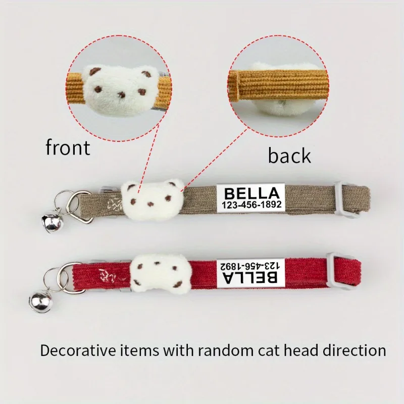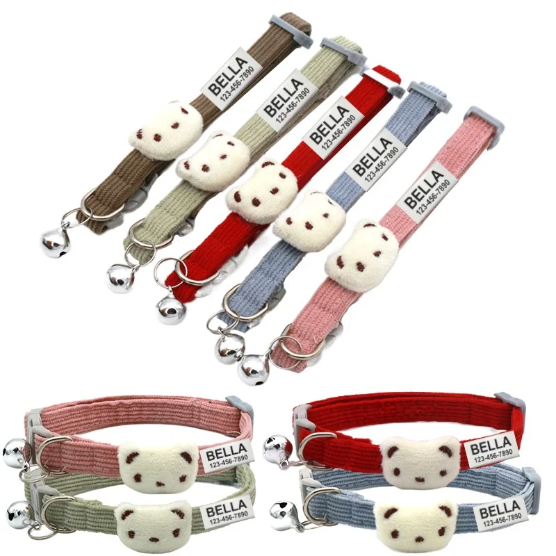 Collar personalizado para gatos, placa con identificación personalizada, etiqueta con nombre de acero inoxidable, collares ajustables de pana para gatos, perros pequeños, cachorros y gatitos