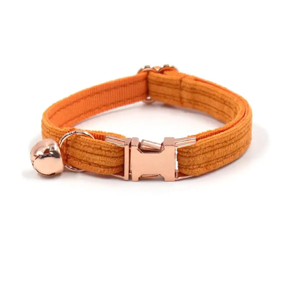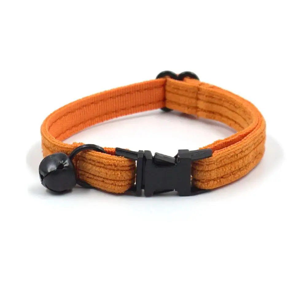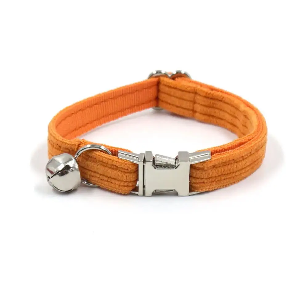 Collar de gato personalizado, placa con identificación personalizada, hebilla de Metal, collares de gato de pana naranja ajustables con campana