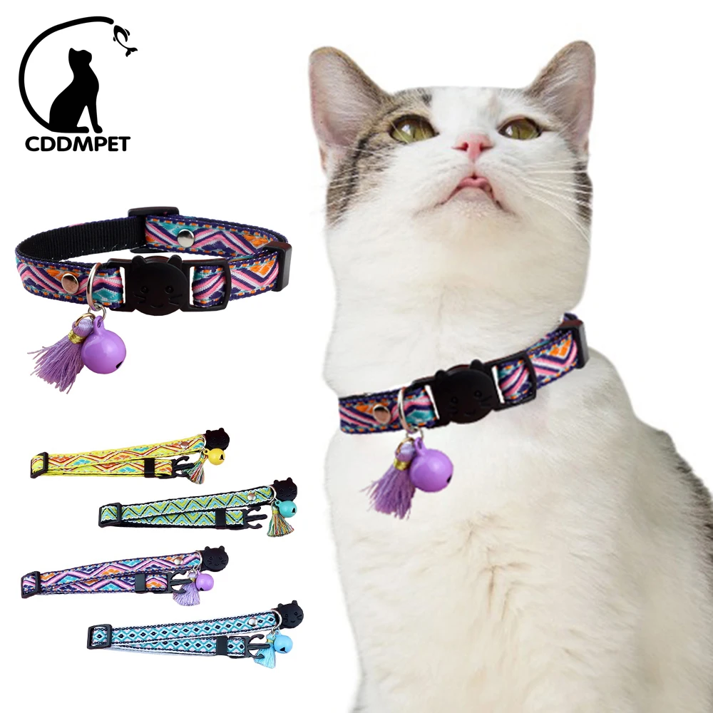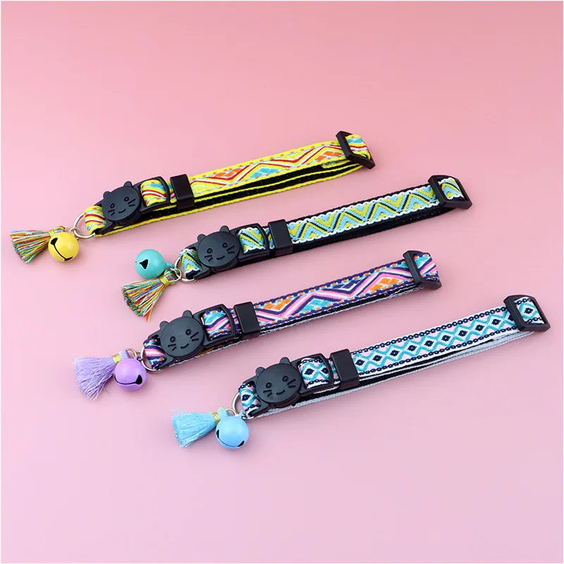 Collar DE SEGURIDAD antiasfixia para gato, collar de gato Jacquard con campana y borla, collar ajustable para cachorro, accesorios para mascotas, 1 unidad