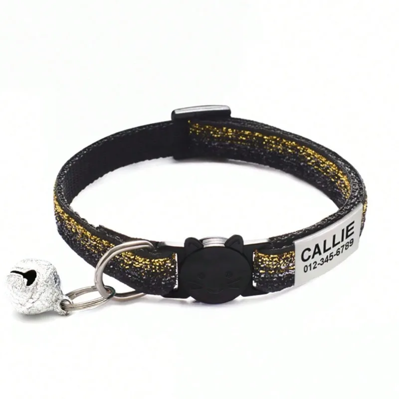 Collar de gato con purpurina personalizado, con etiqueta de identificación, collares para gatos separables seguros, collar bonito de liberación rápida, grabado gratis para gatos y gatitos