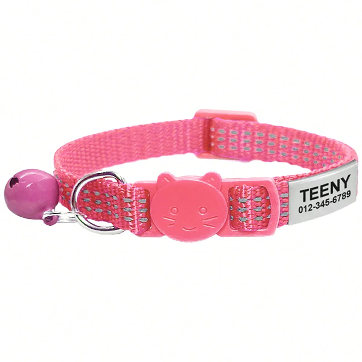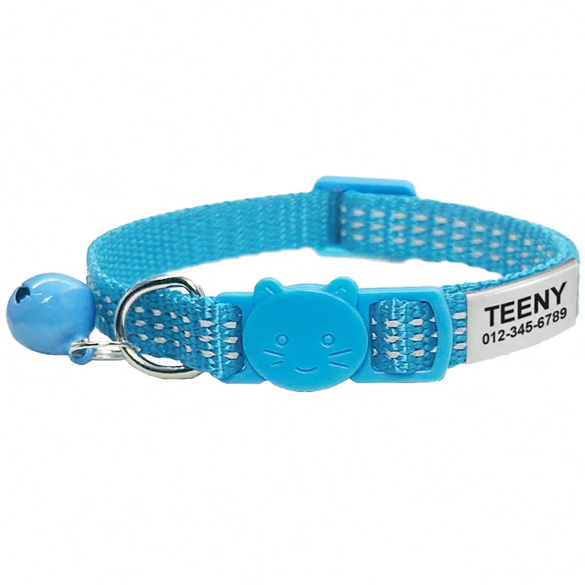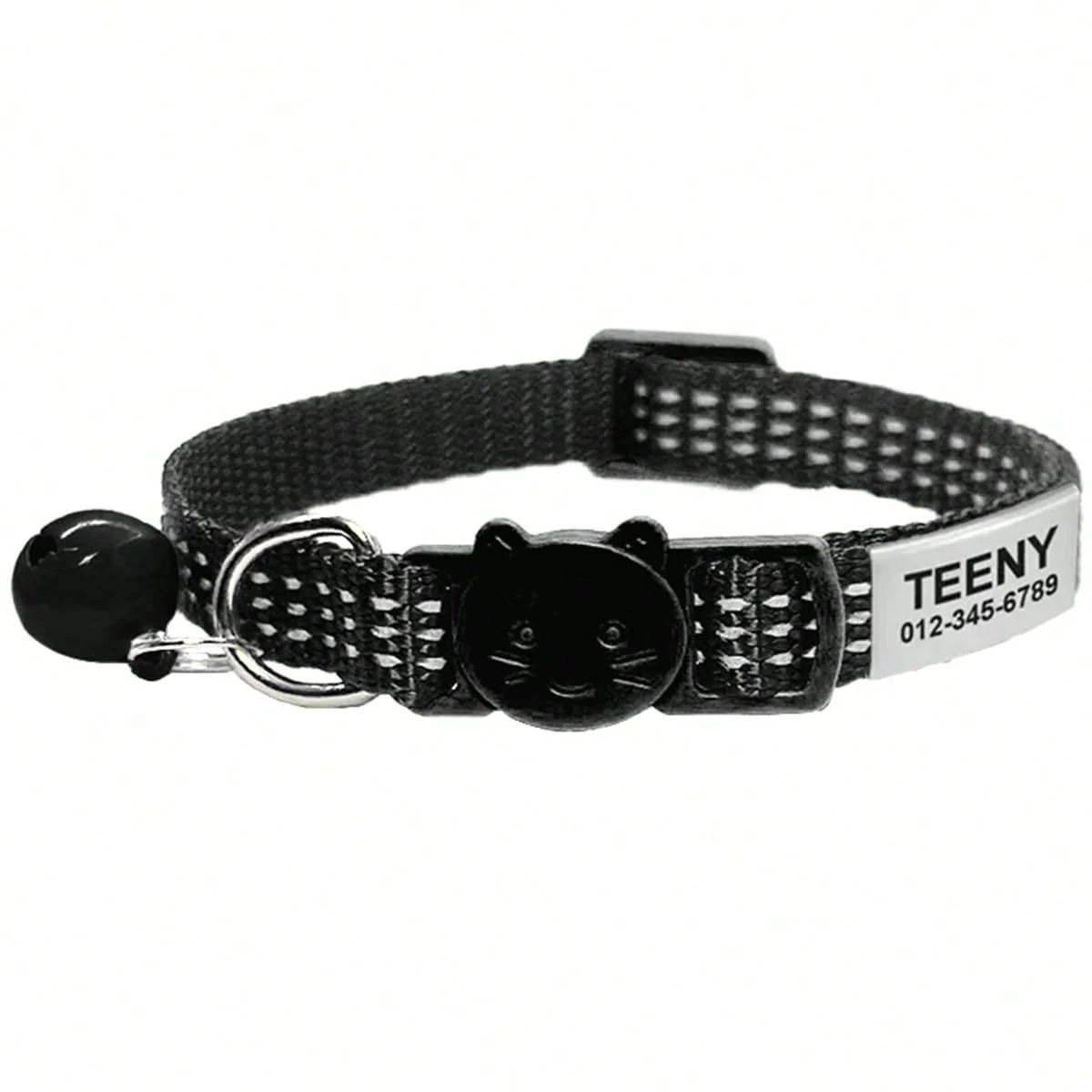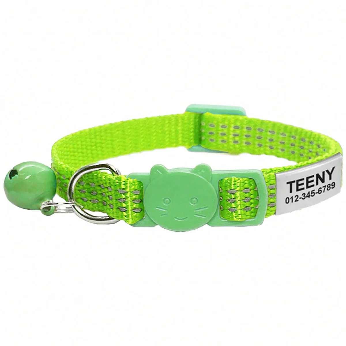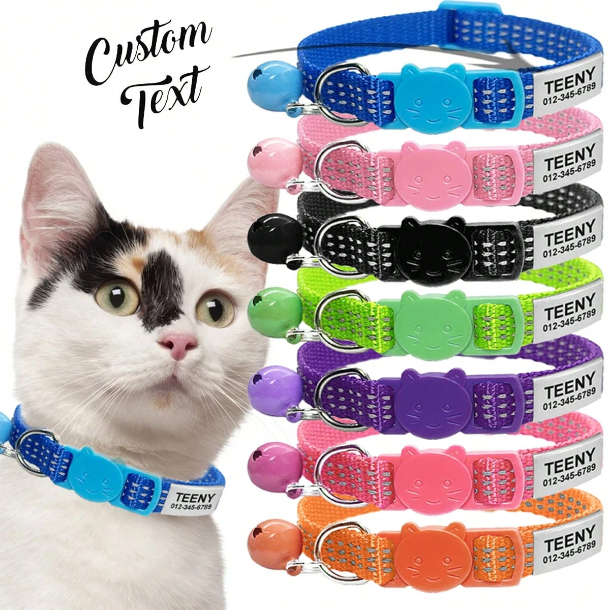 Collar de gato reflectante de liberación rápida, collares de seguridad personalizados para gatos, placa de identificación grabada gratis con bonita campana