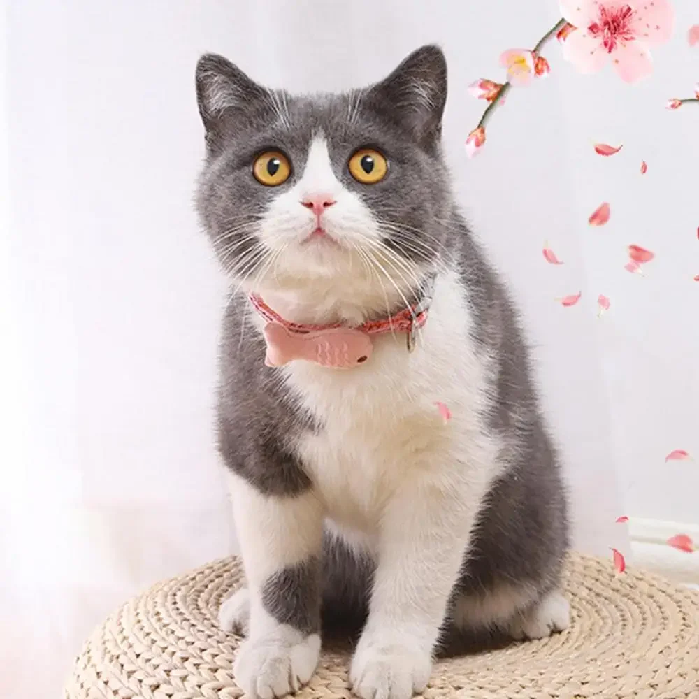 1. Bonito y adorable: eleve el estilo de su gato con nuestro collar de gato adornado con un colgante de pez. Cuatro colores para elegir: Sakura, azul, beige y gris, para combinar perfectamente con la personalidad de tu amigo peludo.