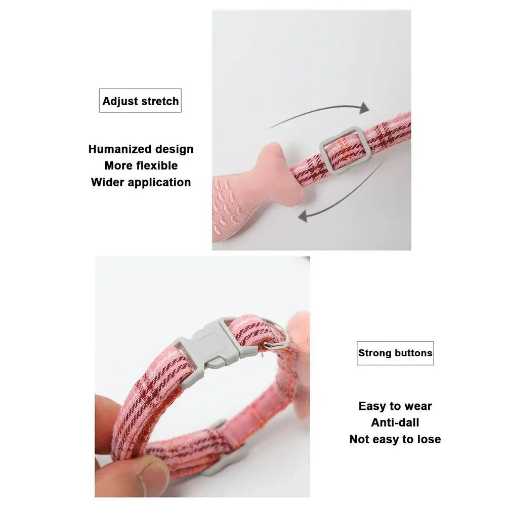 3. Seguridad mejorada: Mantenga a los gatitos seguros con la hebilla de liberación de seguridad de nuestro Collar para gatos. Se pone y quita fácilmente, evita la estrangulación de la piel y las caídas. Encanto de pez divertido. Tu gato no se perderá mientras juega con este elegante accesorio.
