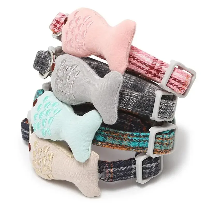 4. Lo mejor del felino: este collar para gatos Está bordado con una felpa de pez que no solo es un lindo amuleto de pez, sino que también hace que su gato se vea hermoso. Es un accesorio único y delicado que no solo es práctico de usar, sino que también muestra su amor por su amigo peludo.