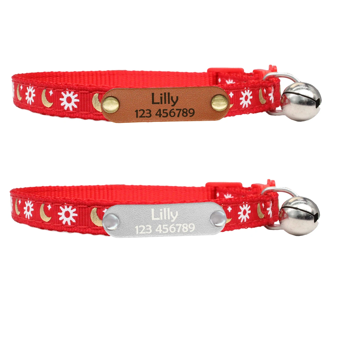 Collar de gato Sun Moon con etiqueta de nombre, Collar de seguridad ajustable para gatitos, reflectante y campana, Collar de identificación personalizado para mascotas para gatos