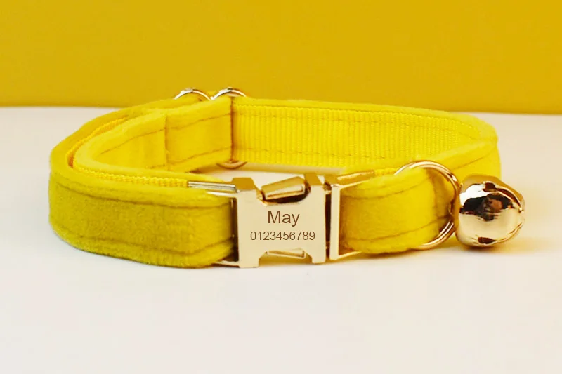 Collar de gato de terciopelo, Collar personalizado con etiqueta de identificación, collares para gatitos, pajarita con campana, Collar pequeño personalizado