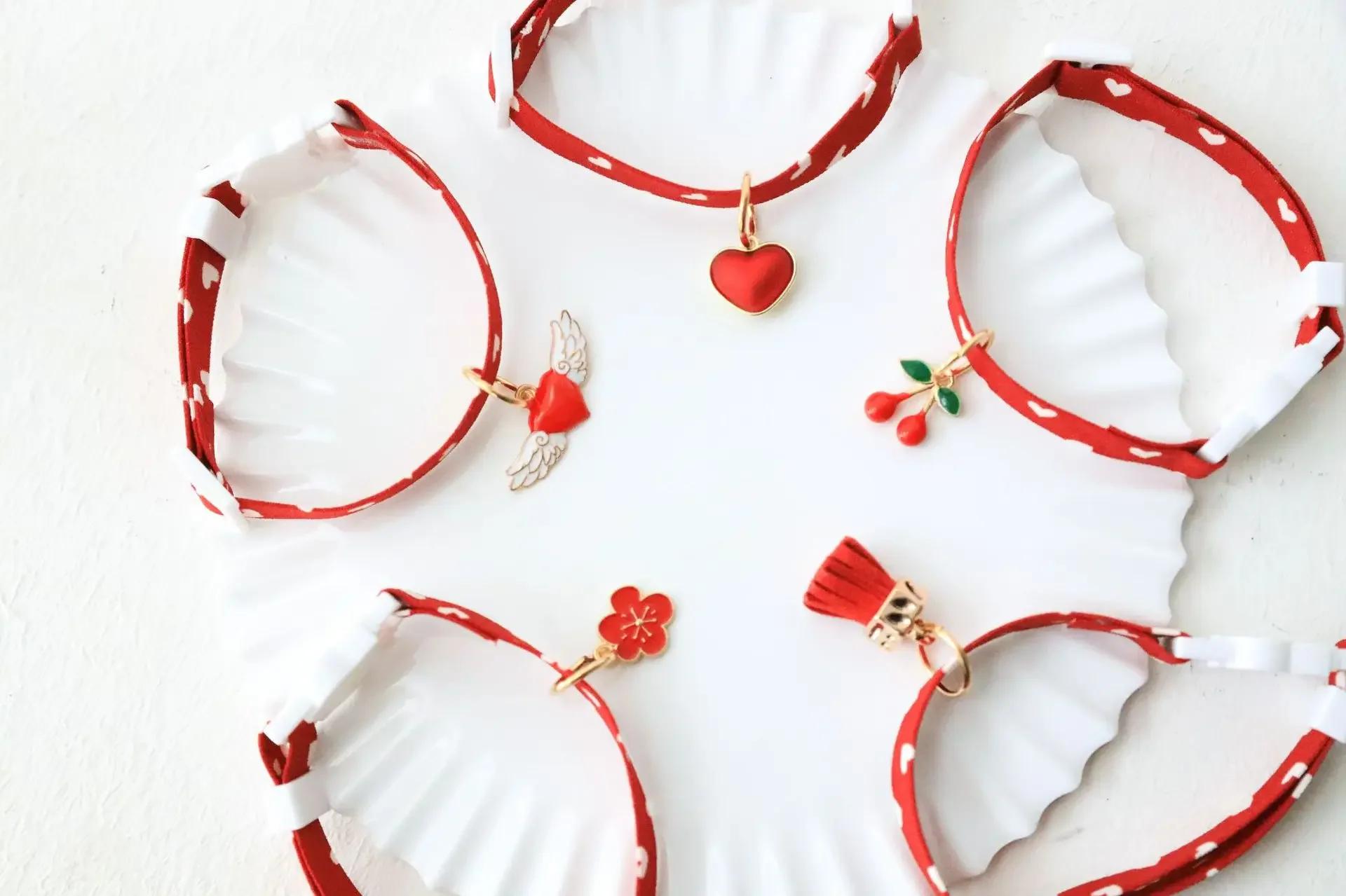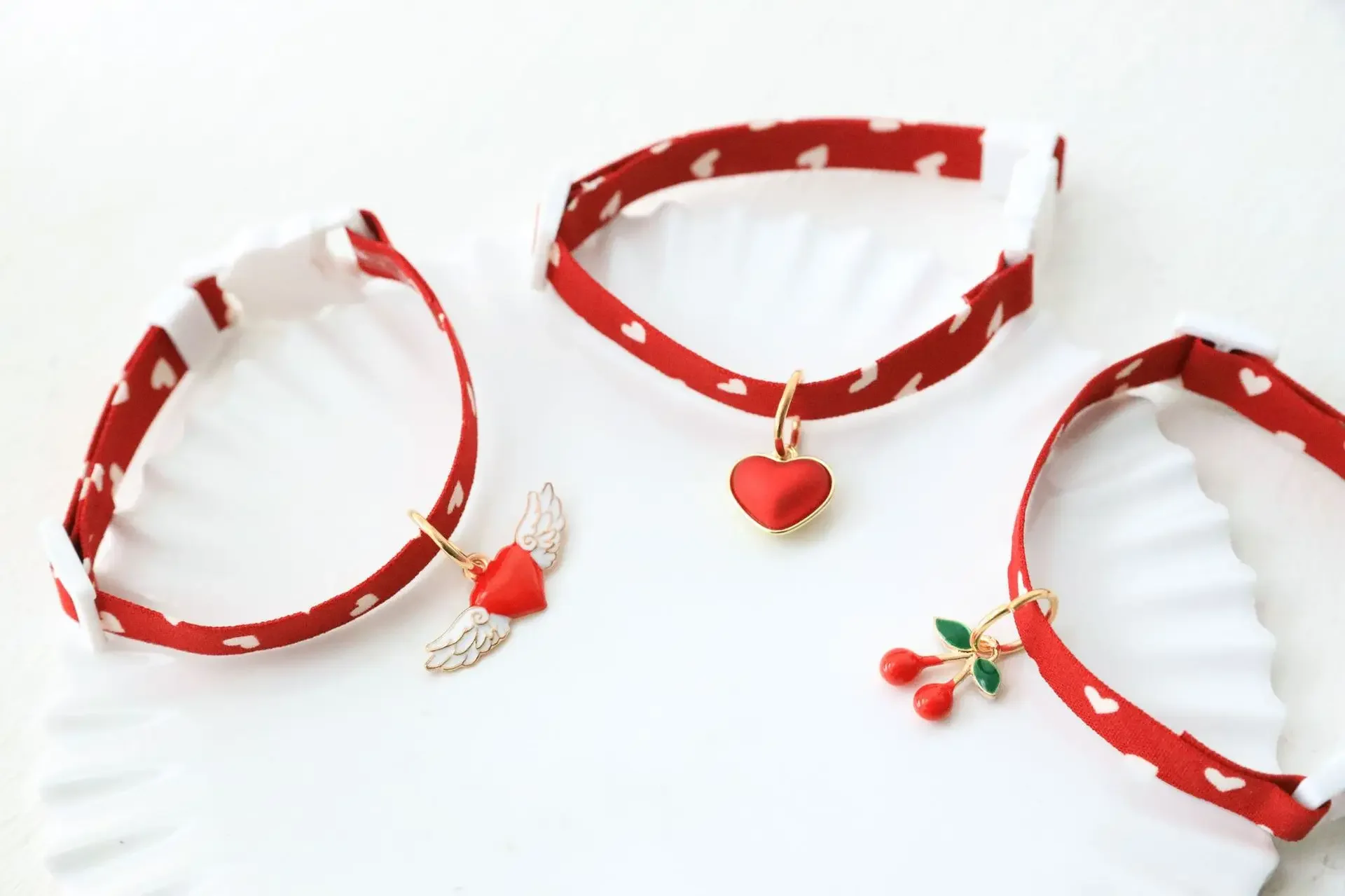 Collar de gato y gatito, Collar de seguridad con forma de corazón, corbata para perro, correa ajustable para cachorros y gatitos, Collar rojo con campana