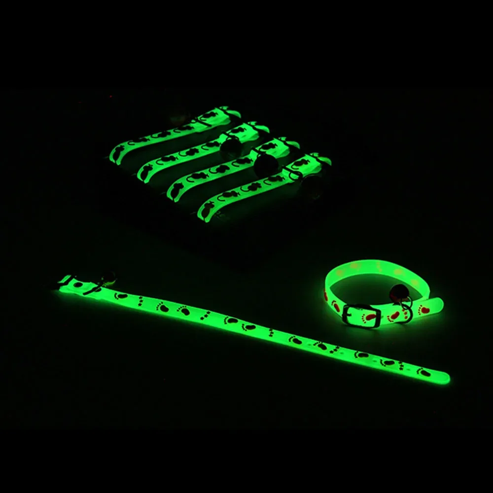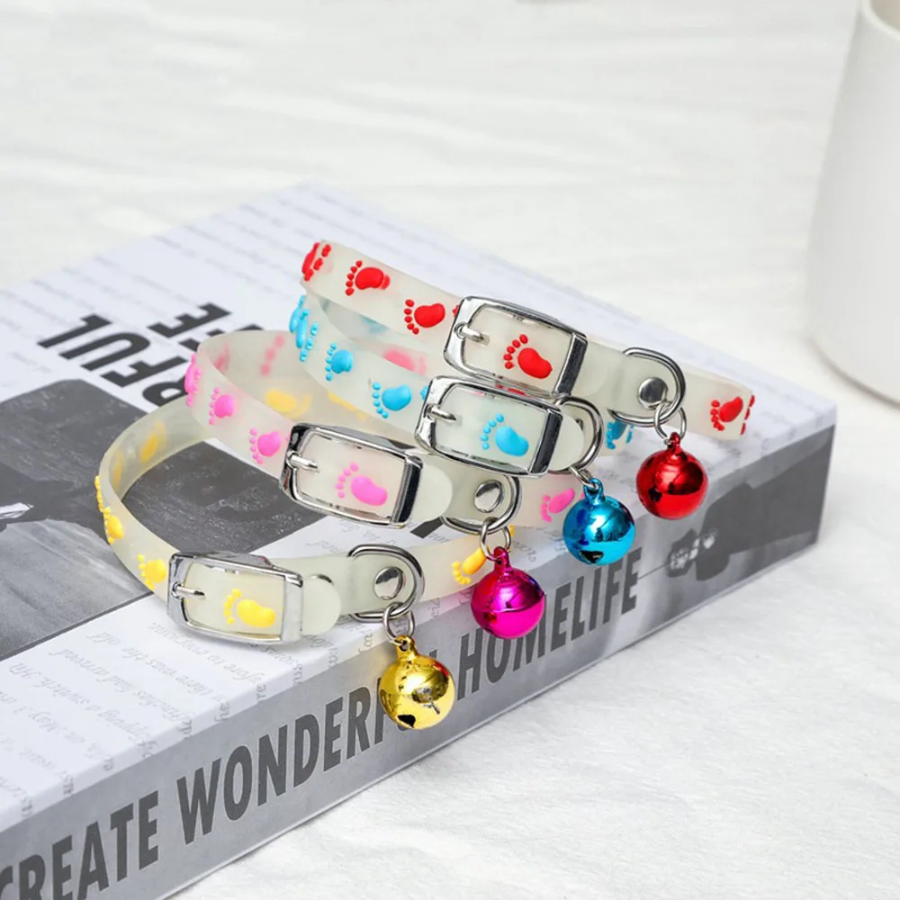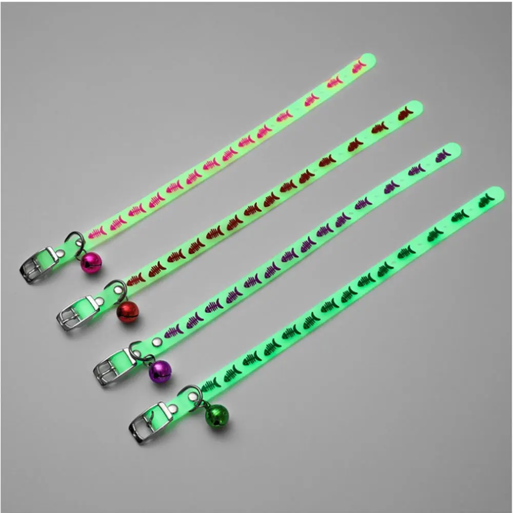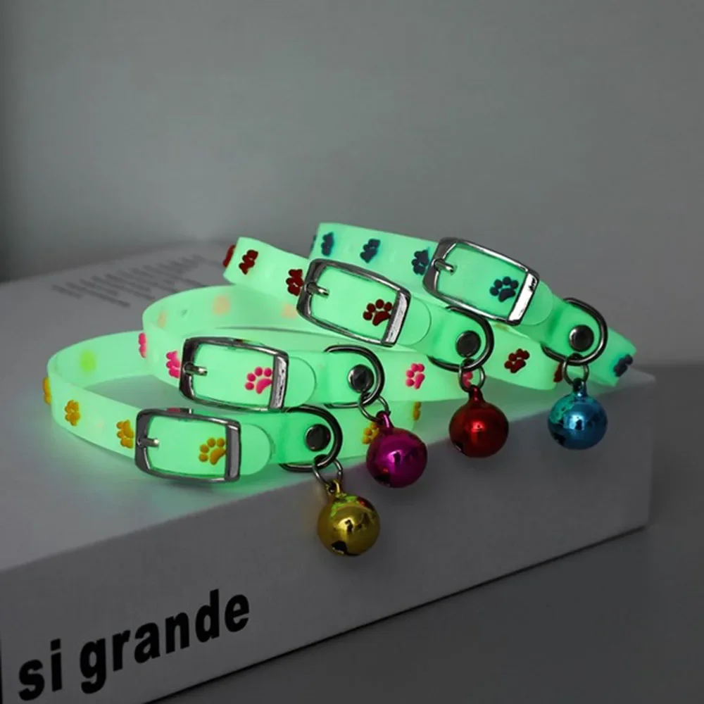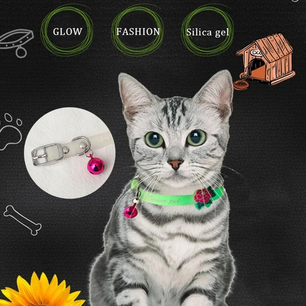 Collar para gatos que brilla en la oscuridad: Collar de silicona fluorescente con campana para collar nocturno antipérdida, suave para gatitos y perros pequeños