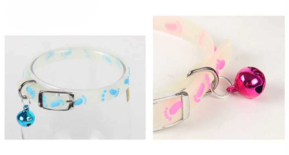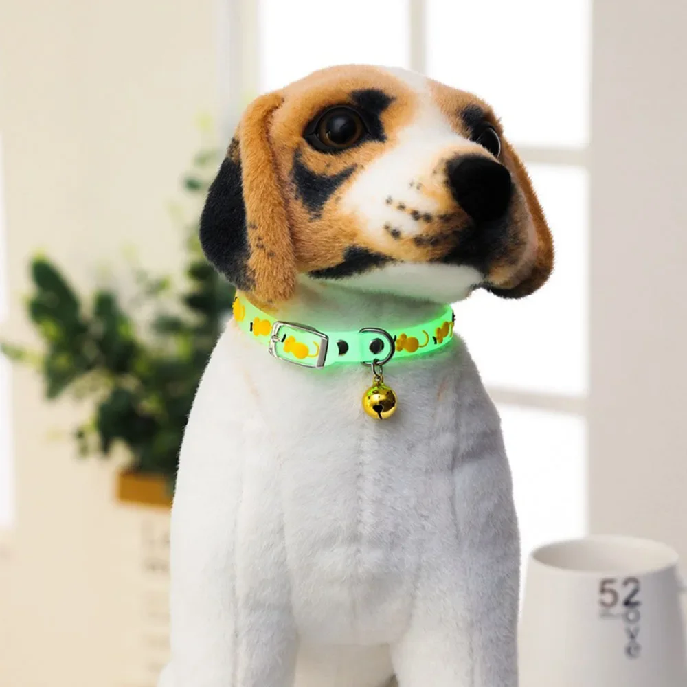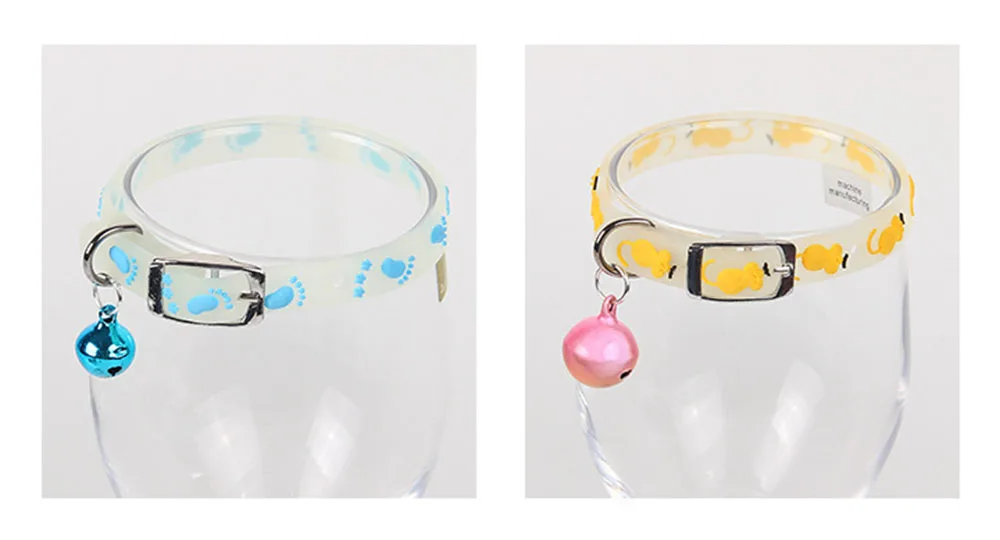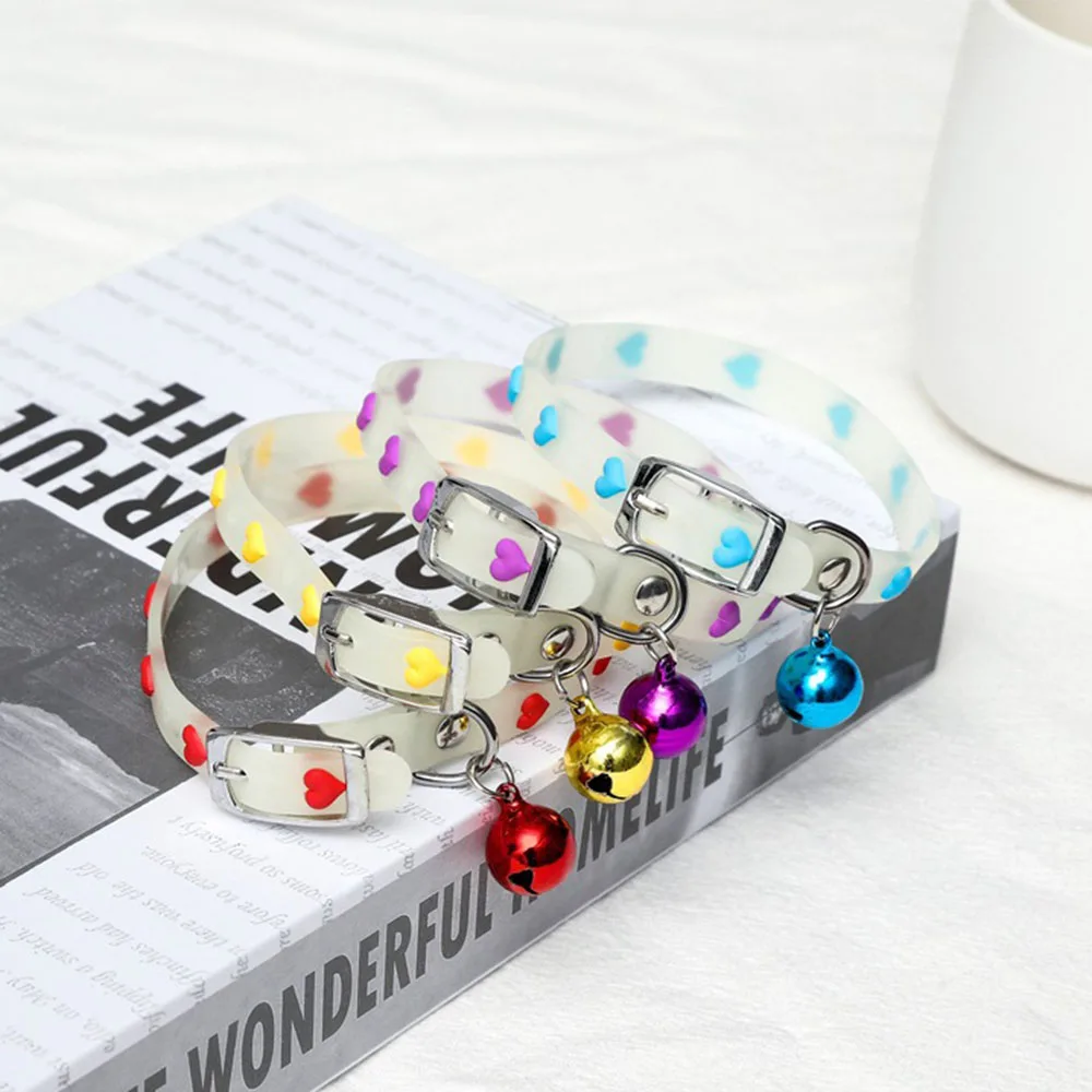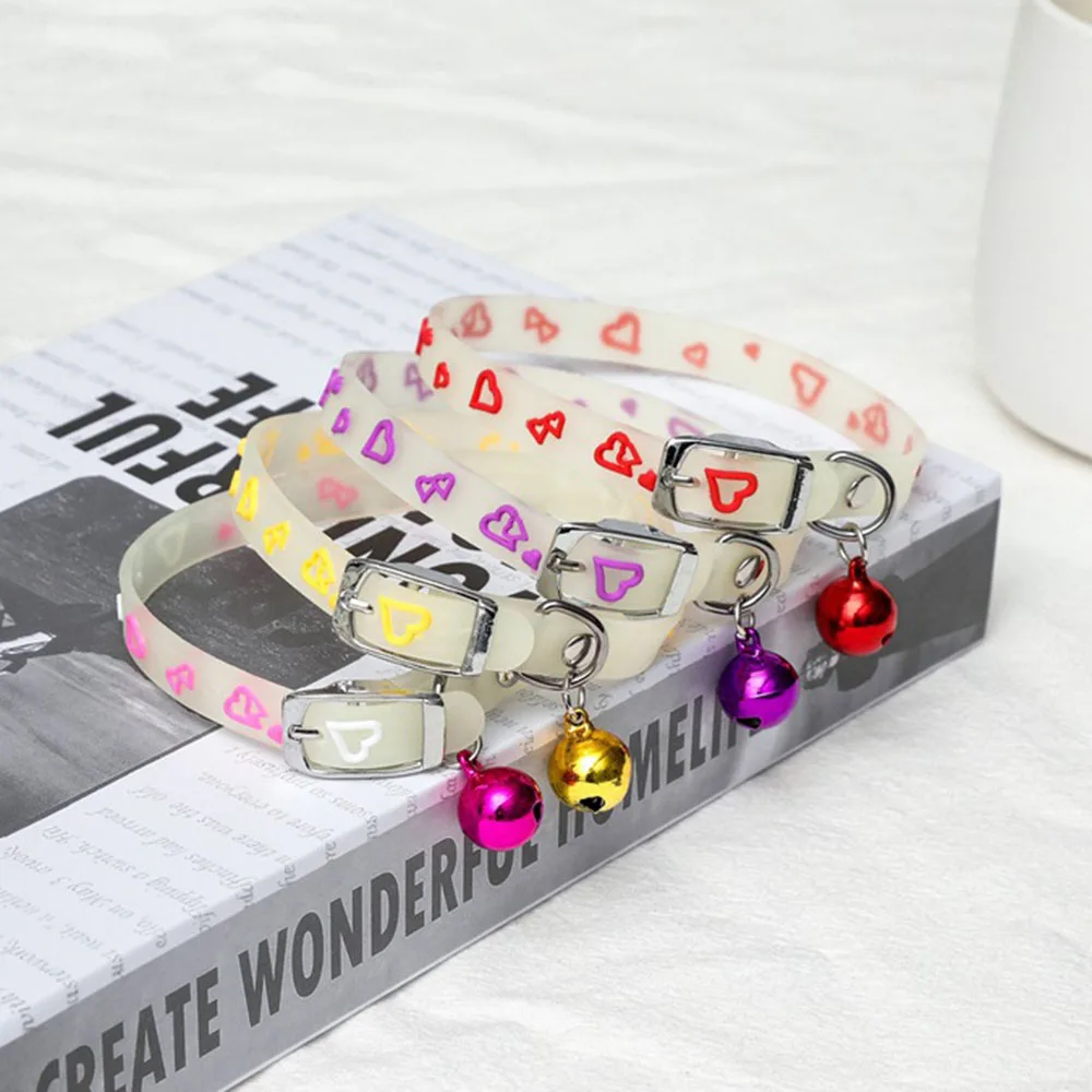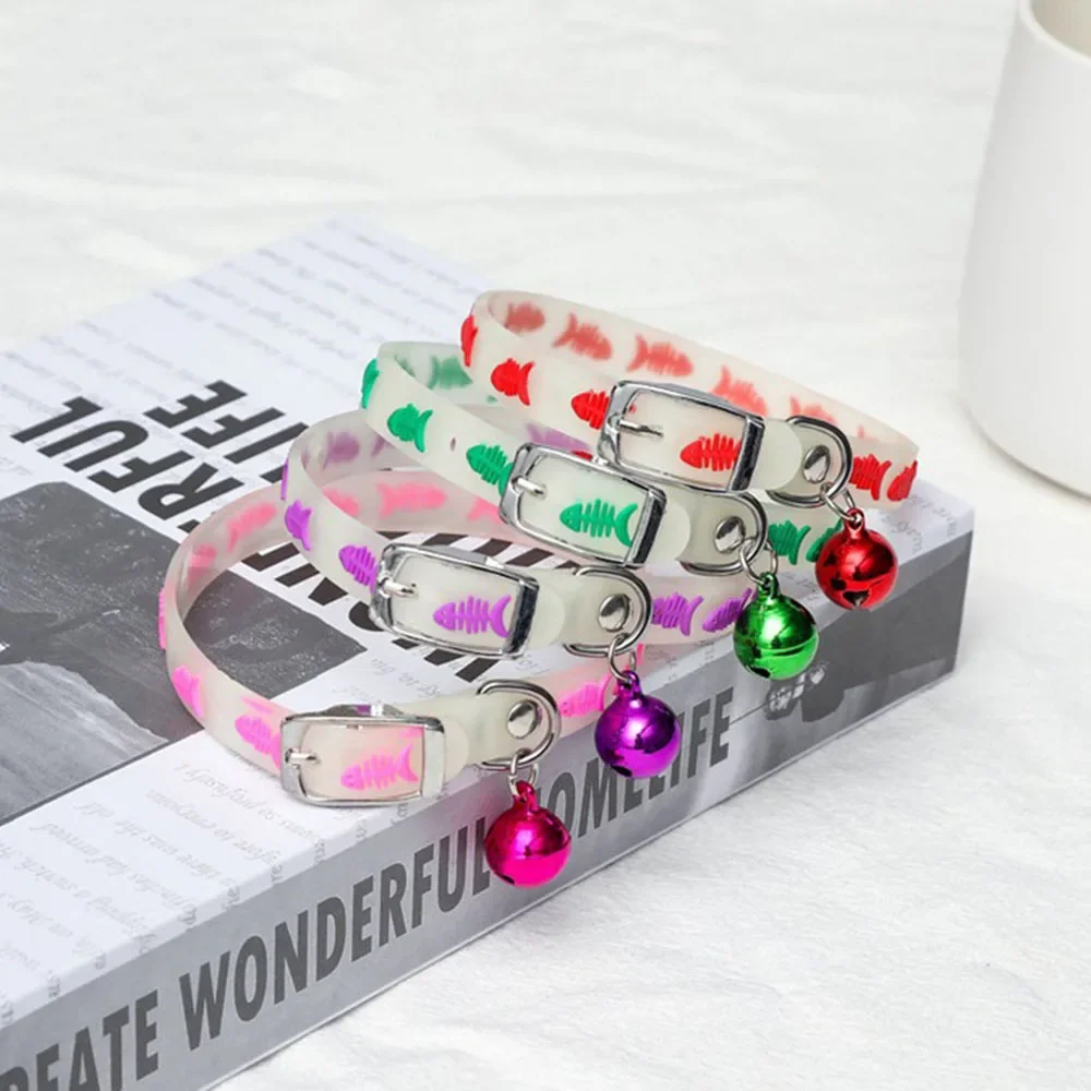 Collar para gatos que brilla en la oscuridad: Collar de silicona fluorescente con campana para collar nocturno antipérdida, suave para gatitos y perros pequeños