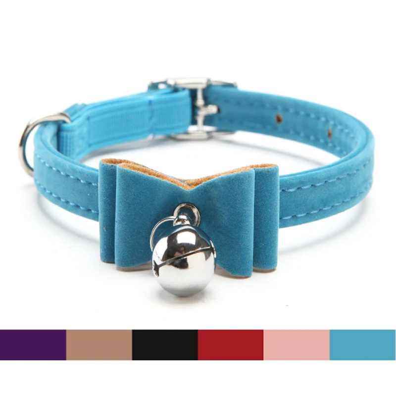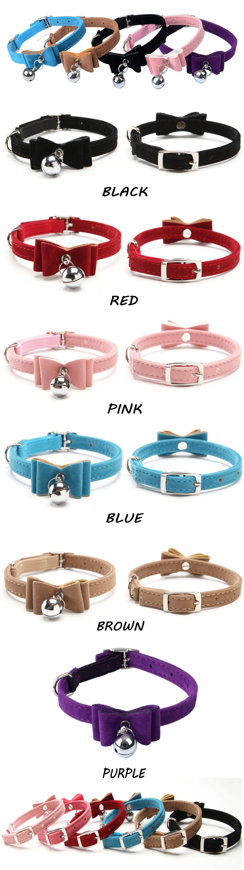 Collar para gatos, cachorros, cinturón elástico de seguridad para perros, ajustable con cascabel y mariposa, material de terciopelo suave S