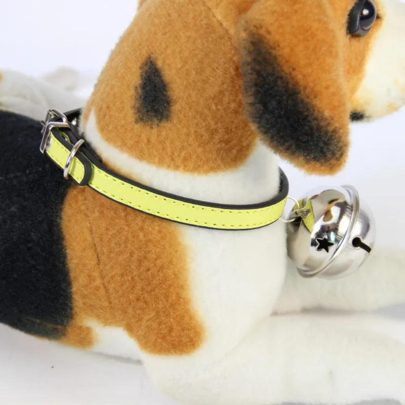 Este hermoso collar para gatos de cuero apto para gatos hecho a mano viene con una pequeña campana de metal de colores brillantes.El color de la campana puede variar.