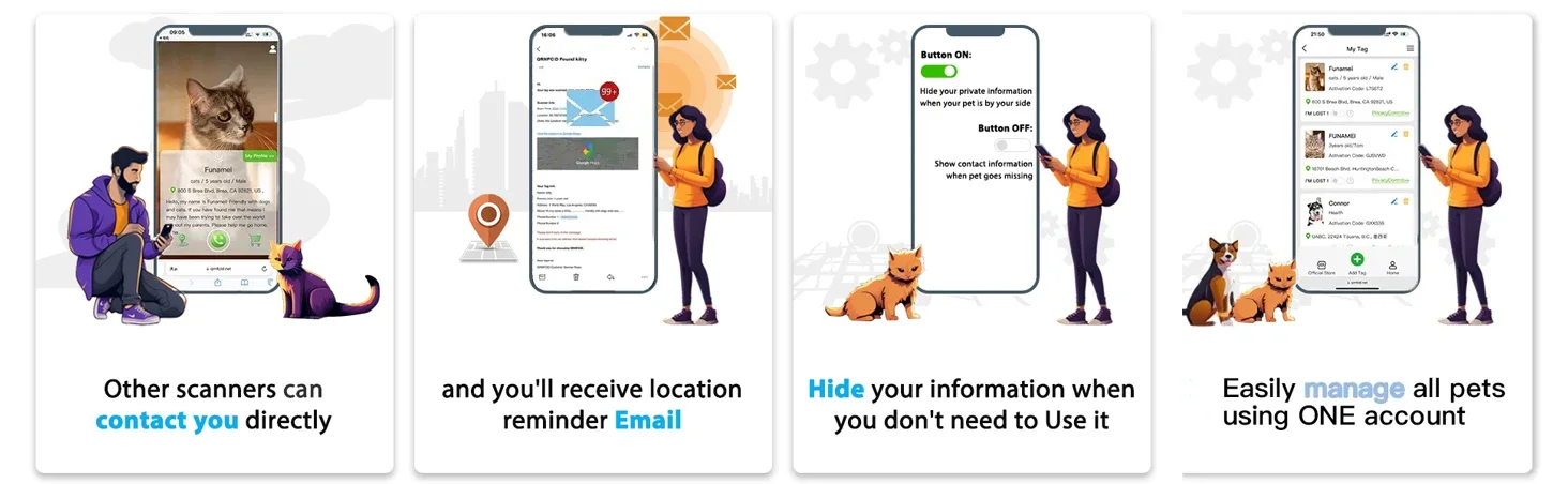 [Reciba correo electrónico instantáneo] Si alguien escanea el código QR, los extraños pueden escanear el código para verificar el número de teléfono que dejó o enviar la dirección a su correo electrónico, mantenerlo informado y localizar a su mascota rápidamente.¡La página gratuita de mascotas en línea evita pérdidas, sin suscripción ni ninguna otra tarifa!