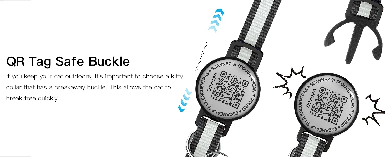 [Doble seguridad: soporte AirTag + QR] A diferencia de otros collares para gatos, nuestro collar para gatos AirTag integrado es más rentable, no es necesario comprar el soporte Air Tag y la etiqueta QR por separado, este collar puede satisfacer todas sus necesidades.