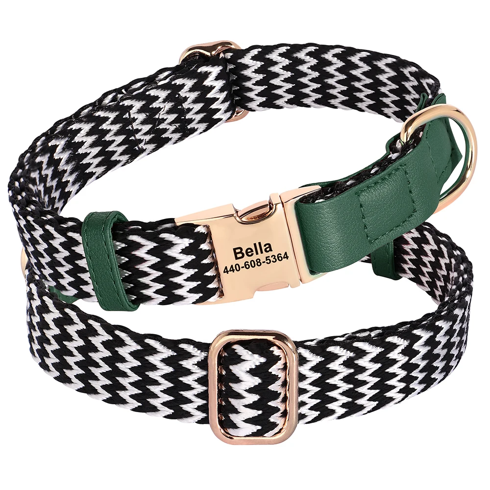 Collar con hebilla para perro grabado gratis, collares con etiqueta antipérdida para mascotas, collares de cuero de nailon personalizados para perros pequeños y medianos, Chihuahua