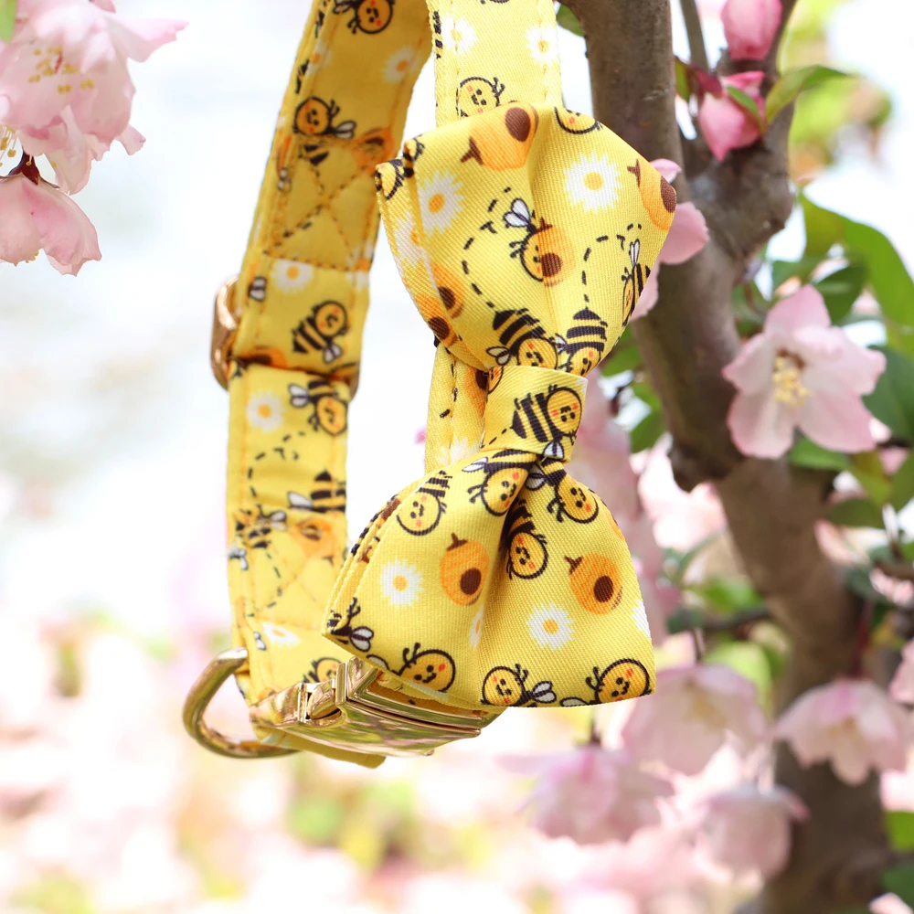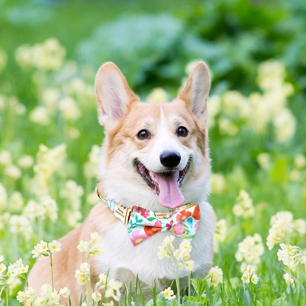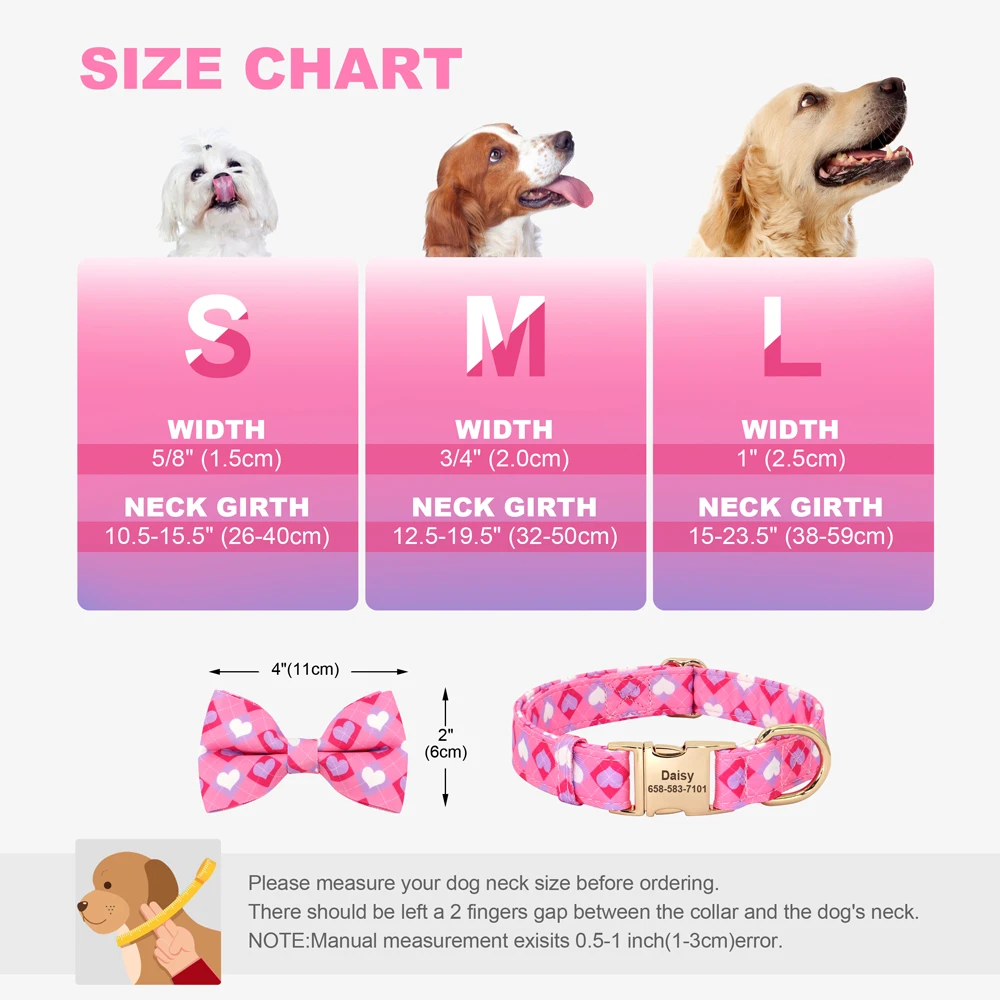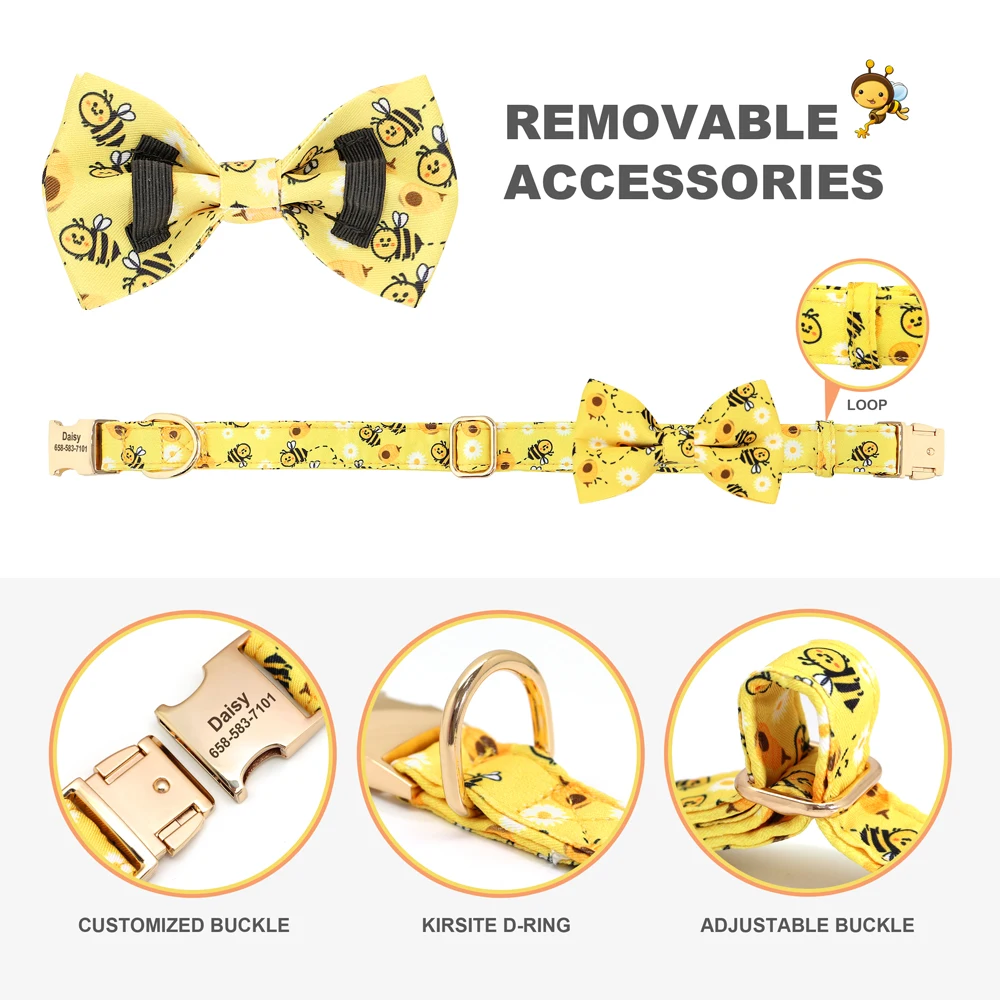 Collar de identificación de perro con pajarita, collares de nailon personalizados para perros con lazo, collar de corazón de abeja y flor grabada gratis para perros pequeños y medianos
